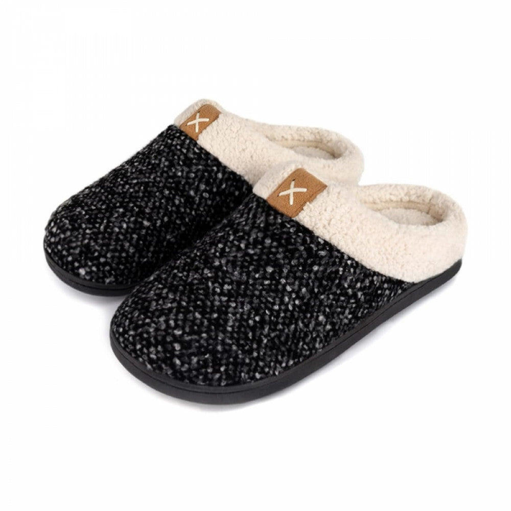 - Ultraideas zimowe kapcie z pianką memory – rozmiar 42-43, czarne, wygodne kapcie domowe