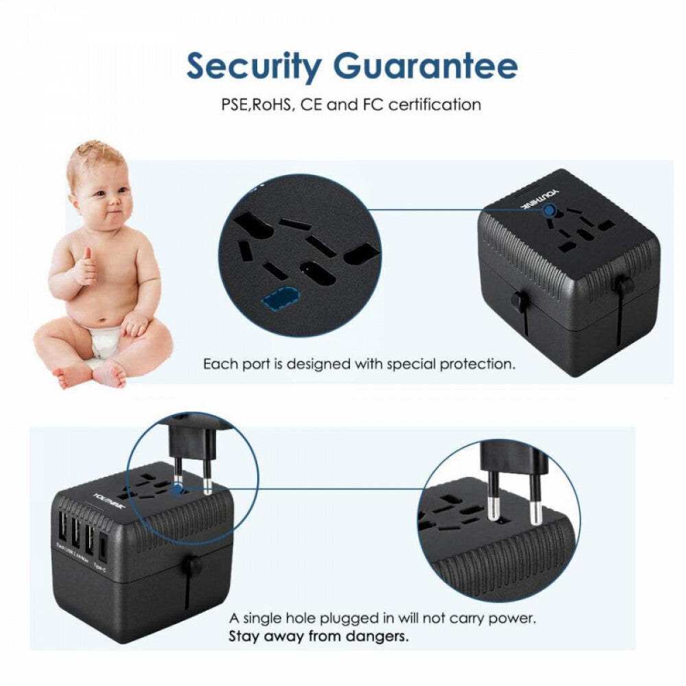 - Do użytku na całym świecie: 4 typy wtyczek (EU, UK, USA, AUS), kompatybilny w ponad 180 krajach – idealny na podróże międzynarodowe.