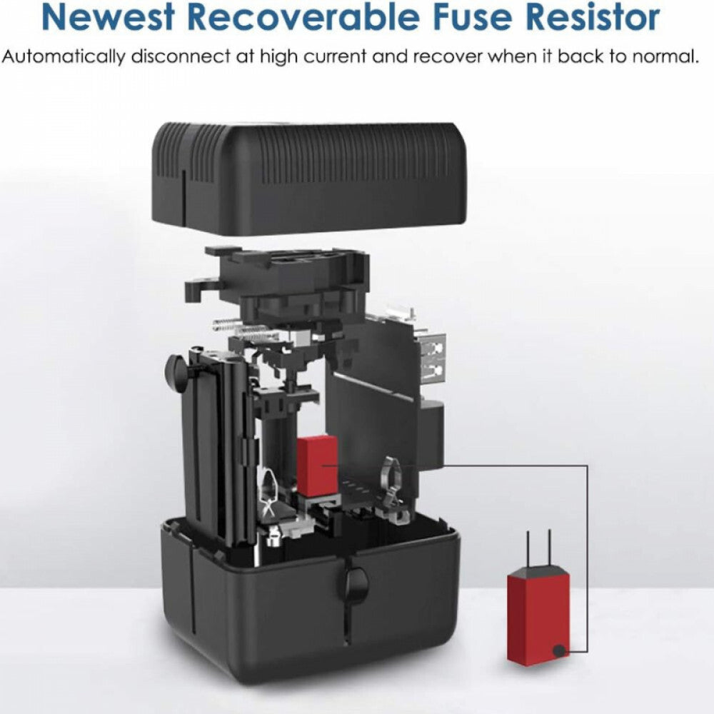 Uniwersalny adapter podróżny z bezpiecznikiem samoczynnym to doskonałe rozwiązanie do bezpiecznego i wygodnego ładowania na całym świecie, w ponad 180 krajach – idealny wybór dla każdego podróżnika.