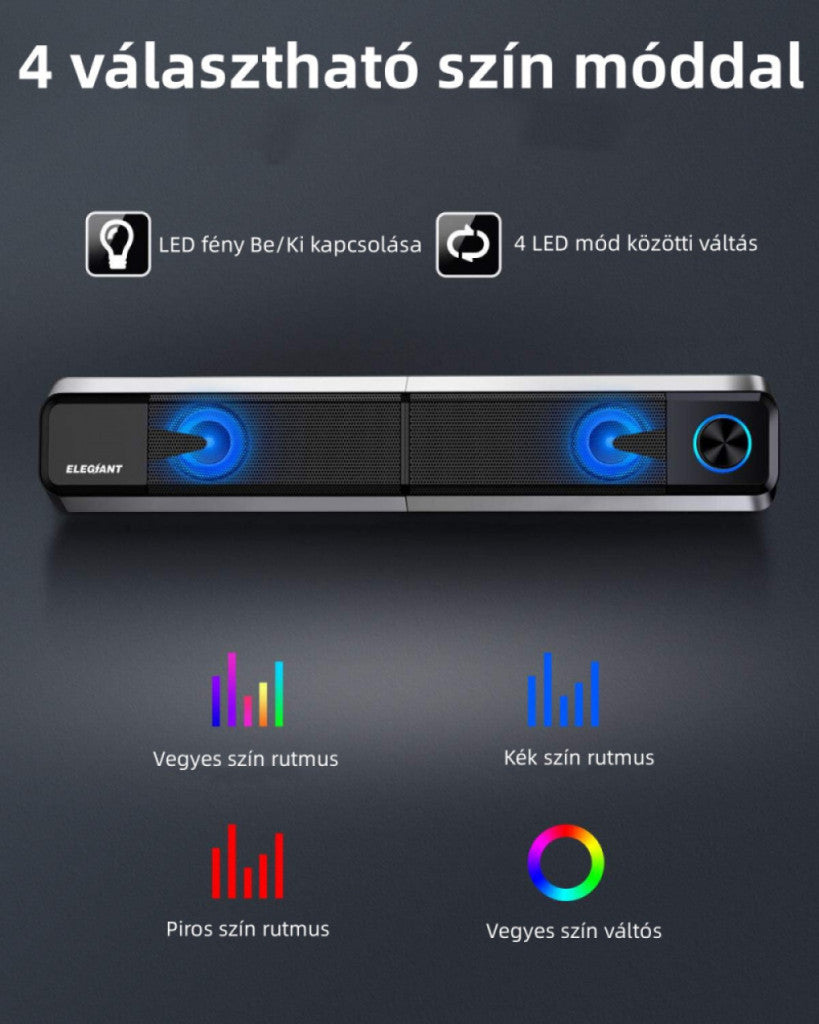 Zanurz się w fantastycznym dźwięku z rytmem żywych świateł LED. Oświetlenie i tryb kolorów kontrolujesz przyciskiem z tyłu. -
