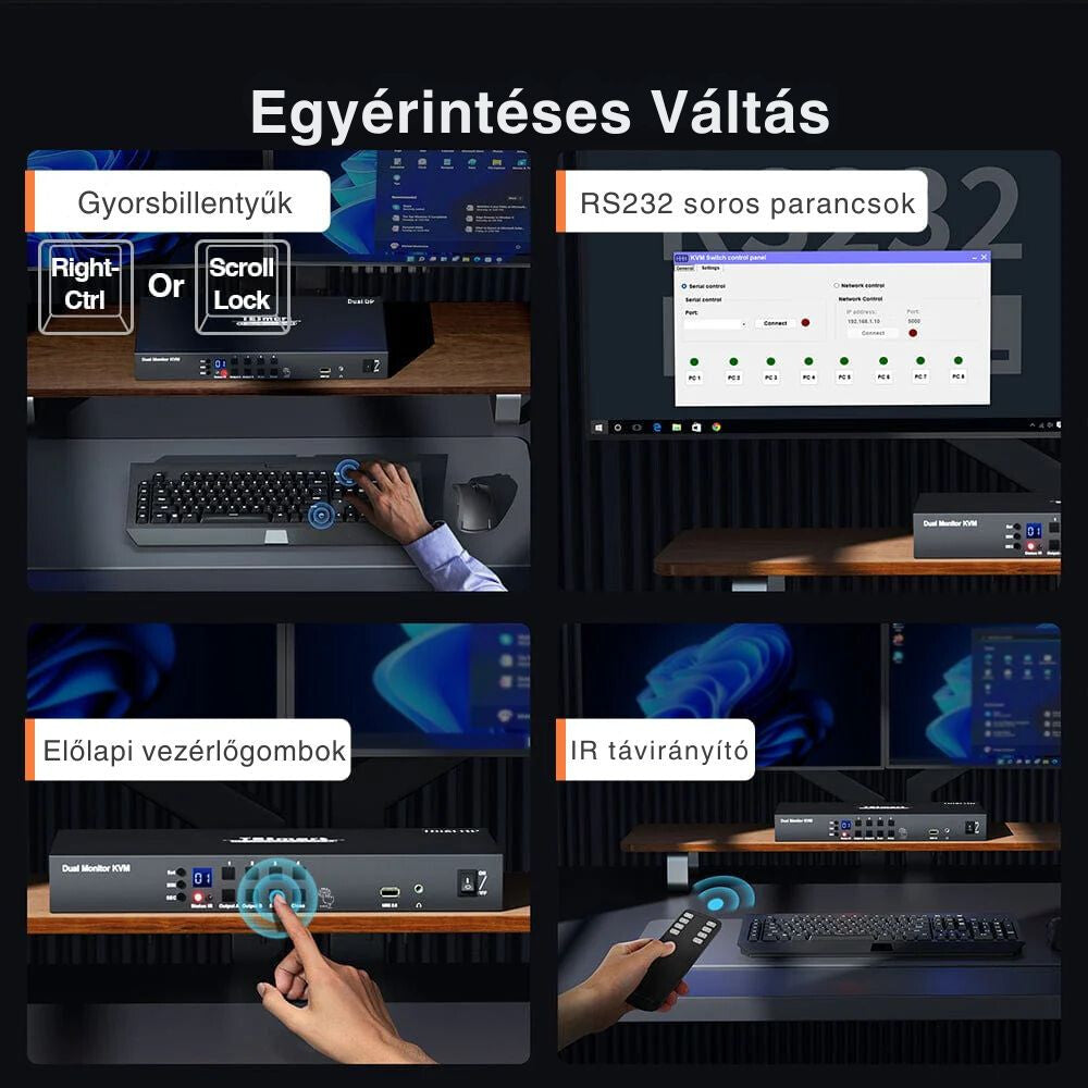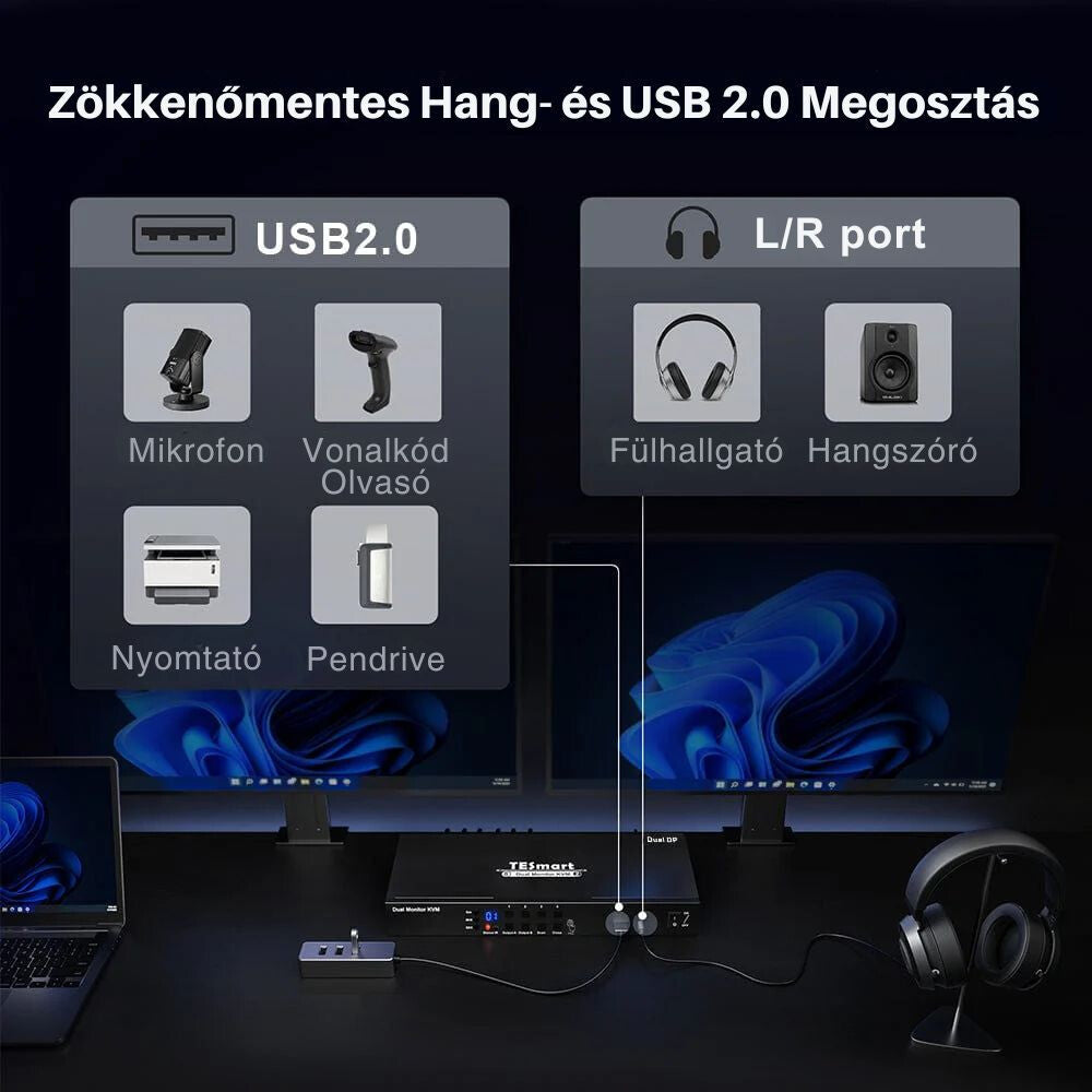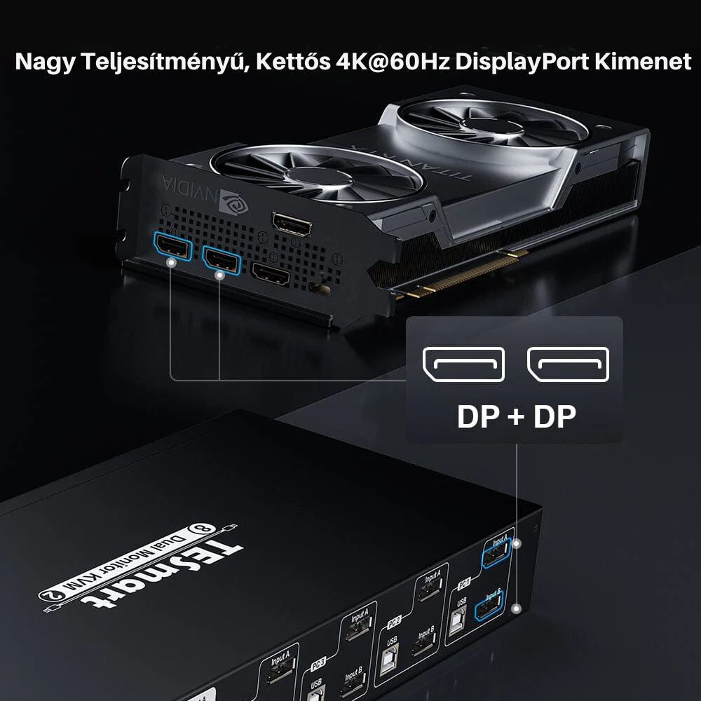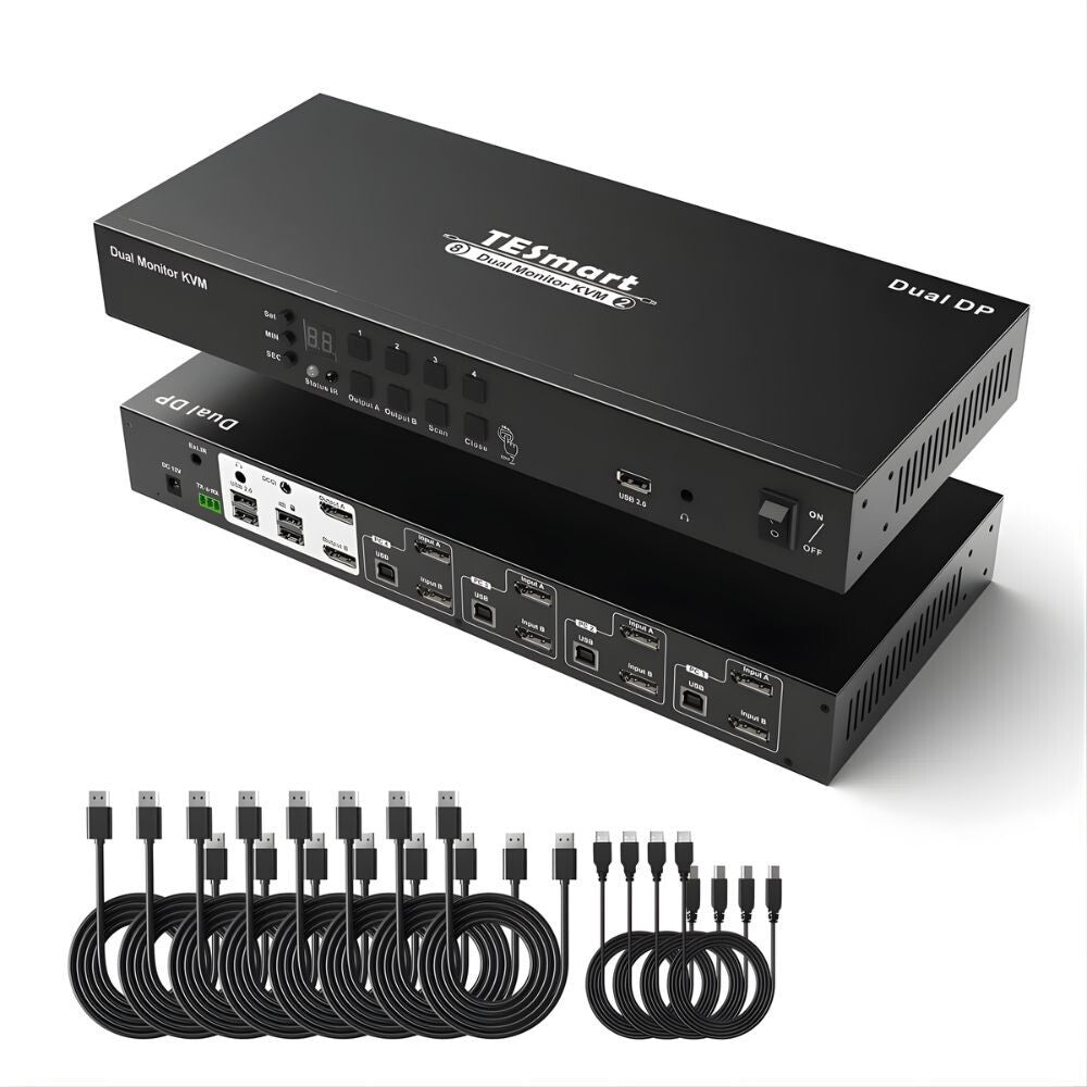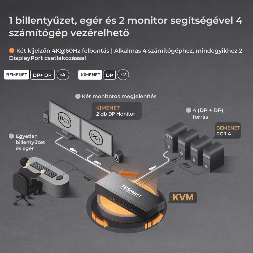 TESmart Podwójny Monitor DisplayPort KVM Switch – 8x2 (4 PC, 2 Monitory) 4K@60Hz, EDID, Hot Plug, USB 2.0, Przejście, DCCI