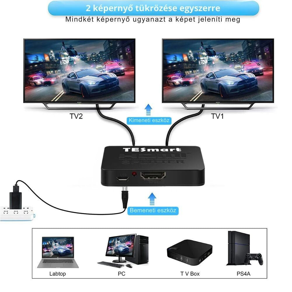 - TESmart Rozdzielacz HDMI 1x2 – 4K@60Hz HDMI 2.0, tryb lustrzany – czarny