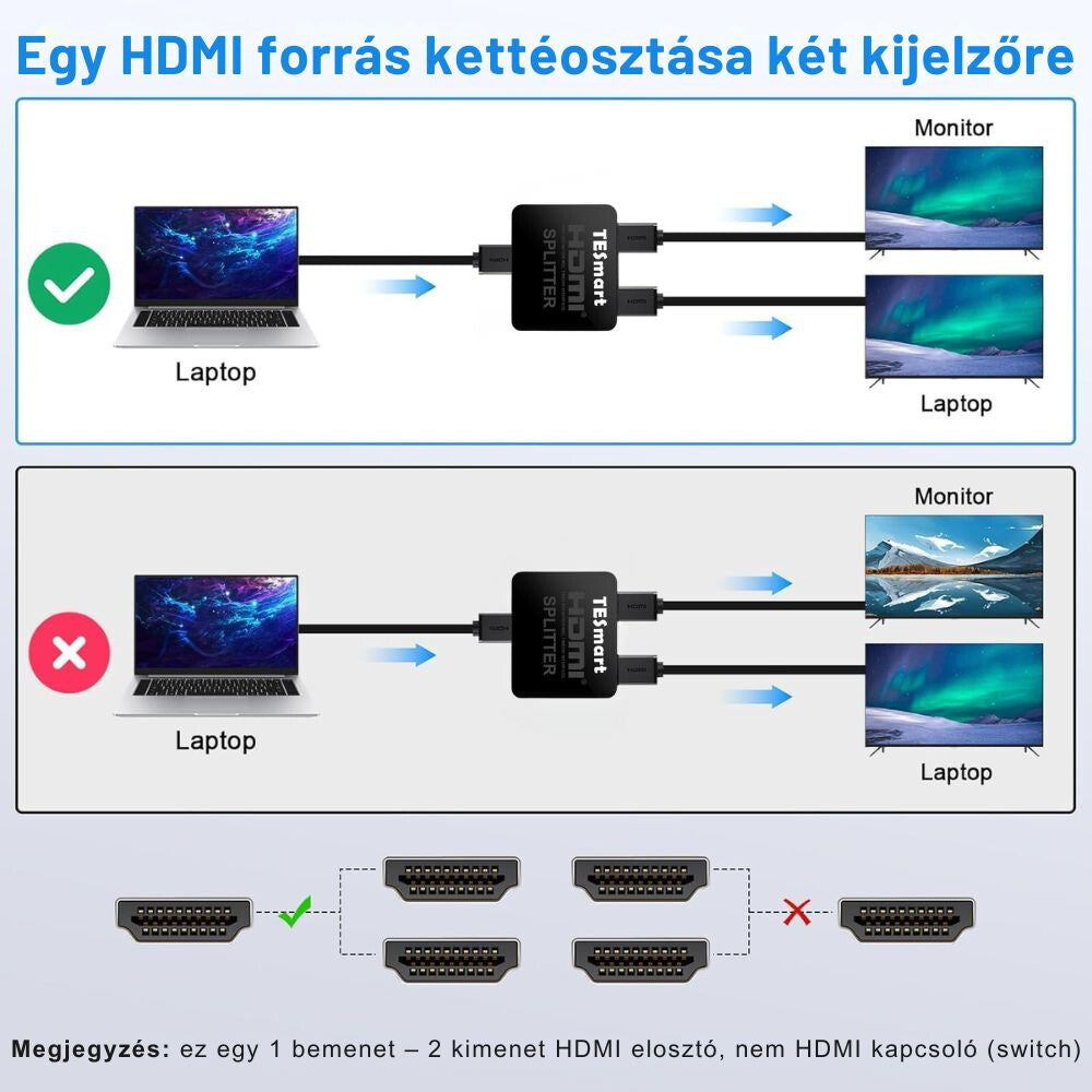 - TESmart rozdzielacz HDMI 1x2 – 4K@60Hz HDMI 2.0, rozdzielanie sygnału, wyświetlanie lustrzane