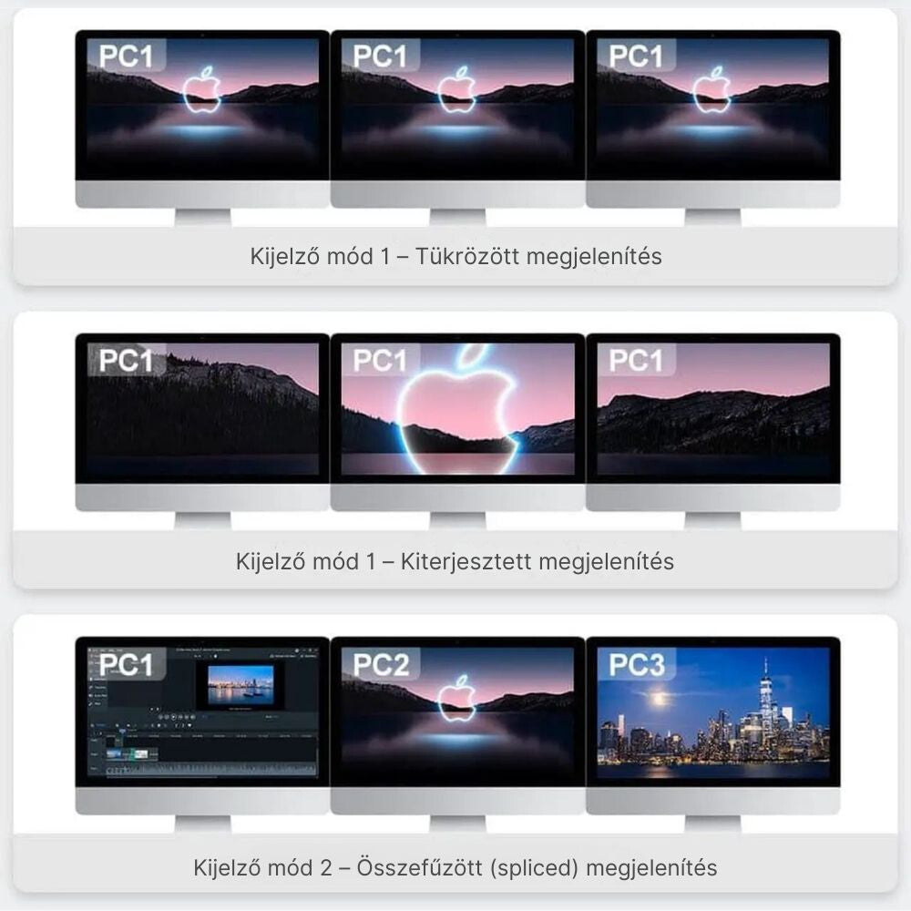 Urządzenie umożliwia rozszerzony pulpit, lustrzane wyświetlanie lub nawet wyświetlanie obrazu z każdego komputera na osobnym monitorze. -