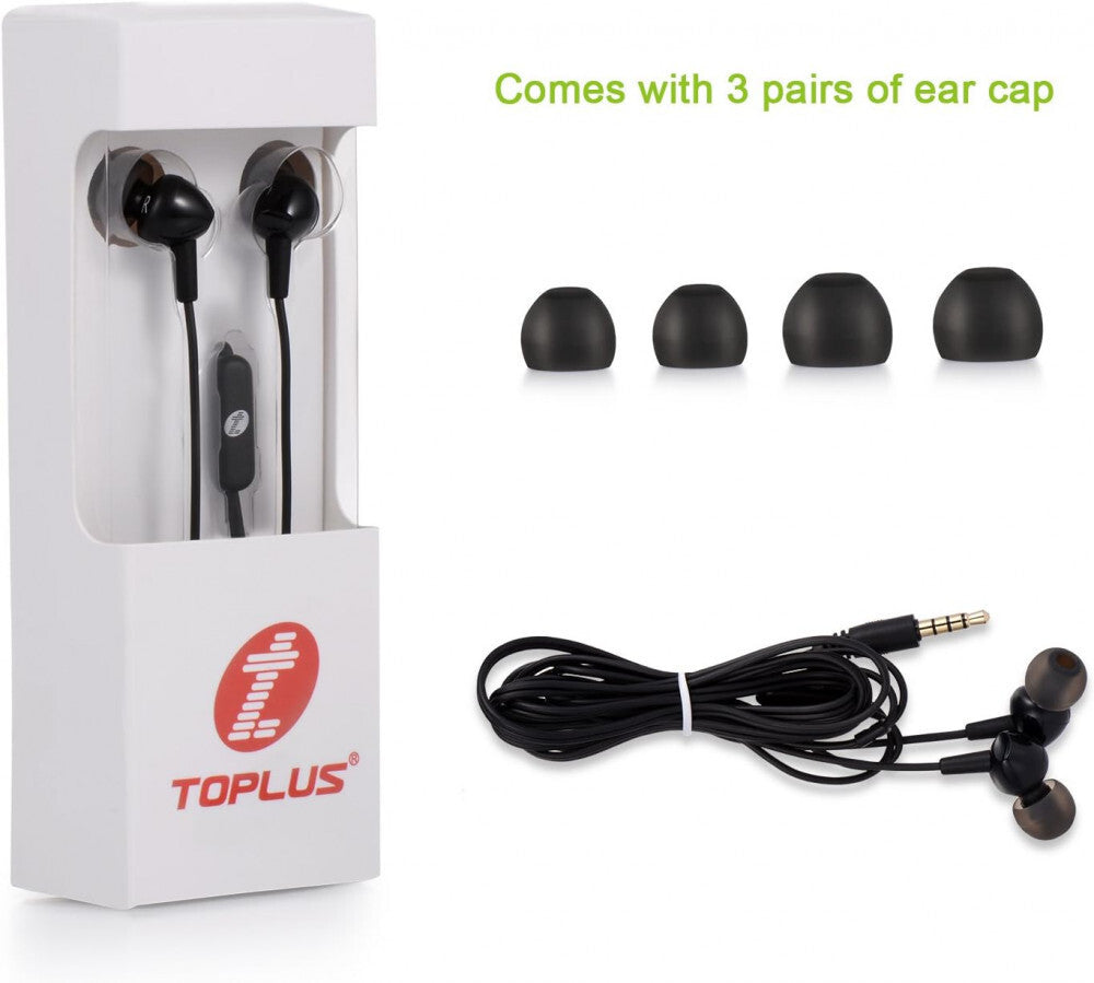 - Toplus Przewodowe Słuchawki do Smartfonów - Czarny, Wygodne i Czyste Brzmienie
