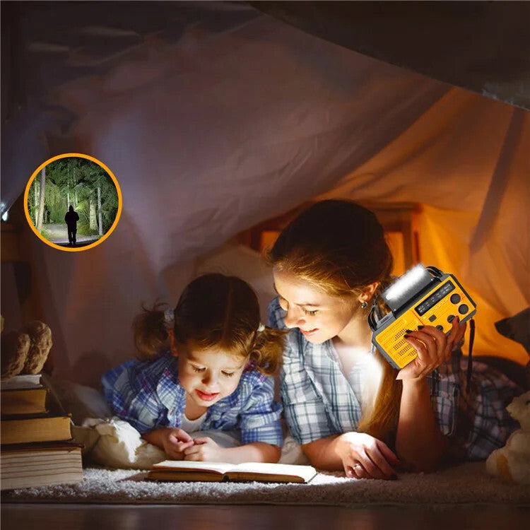 Radiowy Odbiornik Pogodowy na Wypadek Awarii z Latarką - Żółty, FM/AM, Sygnalizacja SOS