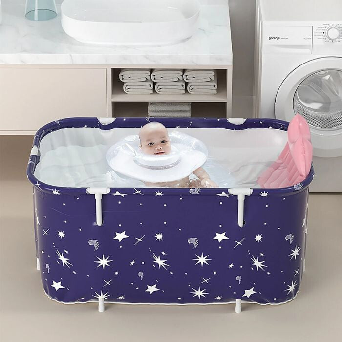 - BLux Składana Wanna dla Dorosłych - 140 cm, Niebieska z Białymi Gwiazdkami