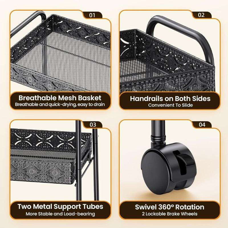 - PKBD 3-poziomowy metalowy wózek na kółkach to doskonały wybór do każdego miejsca w domu, czy to kuchni, łazienki, biura czy gabinetu. Wytrzymała metalowa konstrukcja i nowoczesny czarny kolor sprawiają, że jest nie tylko praktycznym, ale i eleganckim dodatkiem do Twojego wnętrza.