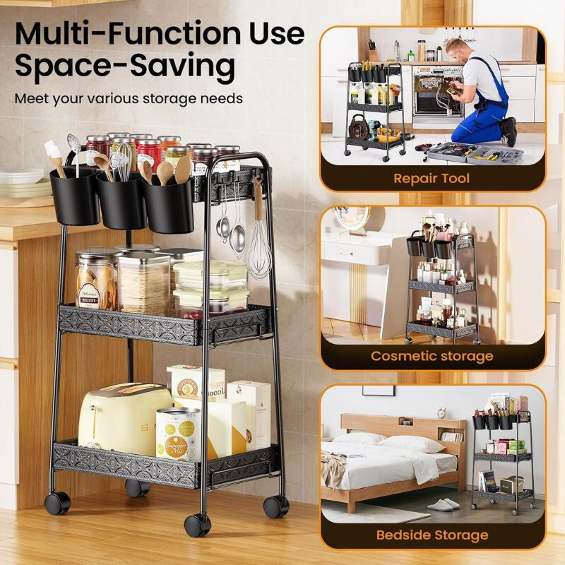 - 3-poziomowa konstrukcja - Trzy półki zapewniają dużo miejsca do przechowywania różnych przedmiotów.