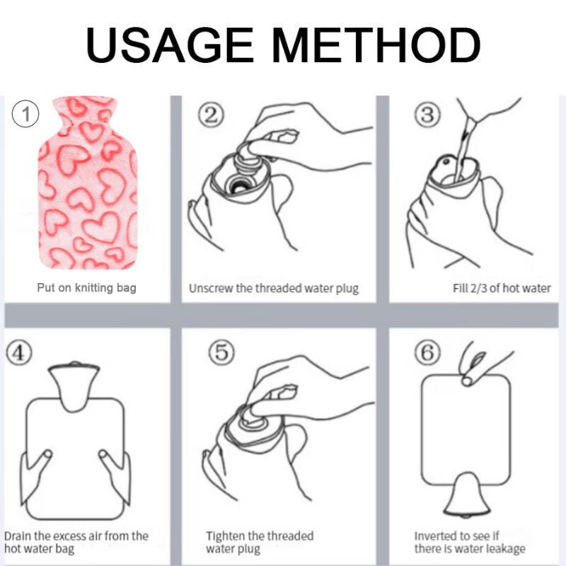 - Używanie jest proste i bezpieczne: napełnij termofor maksymalnie do dwóch trzecich i używaj wody nie cieplejszej niż 80 °C, aby uniknąć ryzyka poparzenia. Dzięki kompaktowym rozmiarom łatwo go przenosić, co czyni go idealnym towarzyszem podróży.