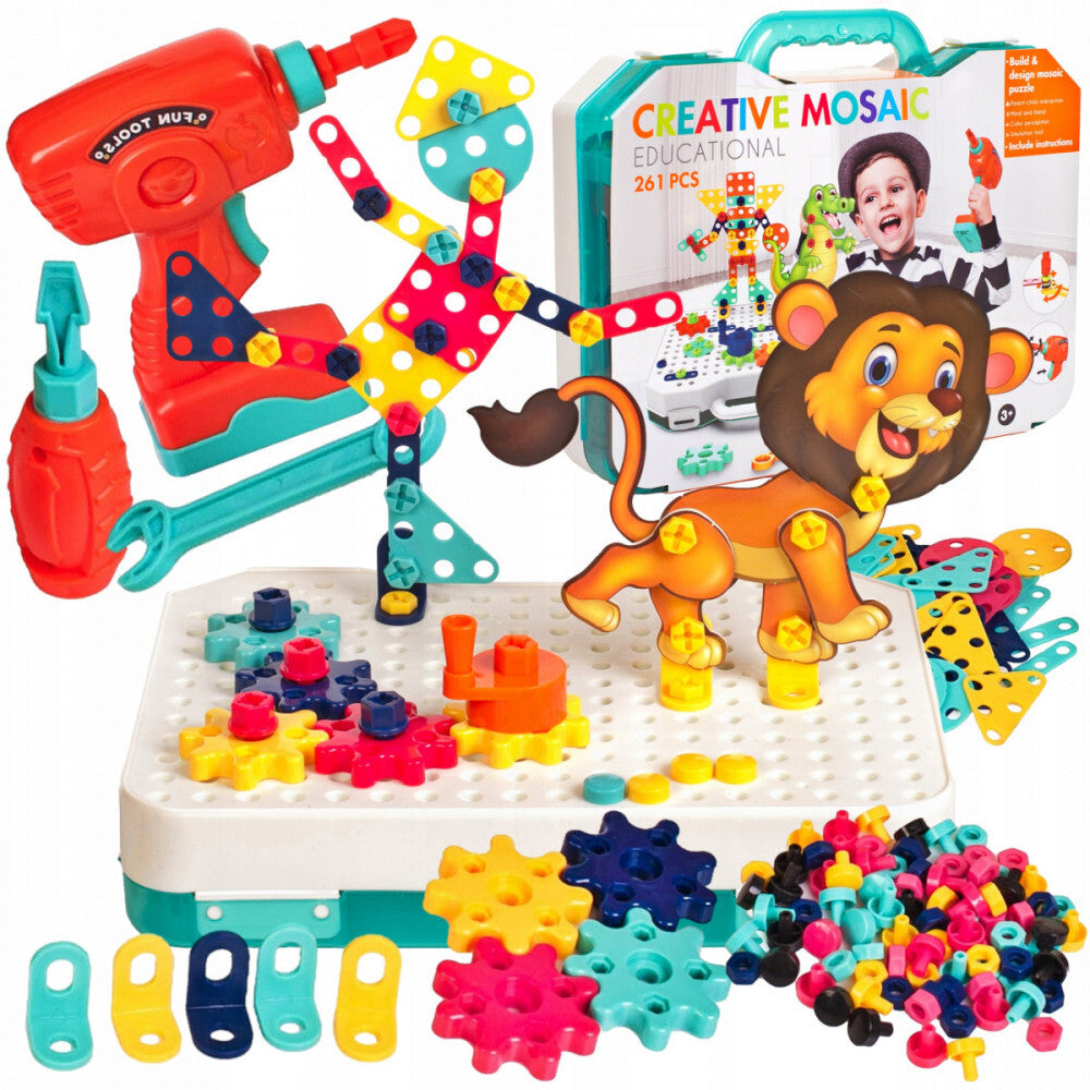 - Rozwijaj kreatywność i sprawność manualną swojego dziecka dzięki temu zestawowi majsterkowicza na baterie, który jest idealnym wyborem dla każdego małego złotej rączki! W zestawie znajduje się wkrętarka na baterie oraz dołączone wzory, dzięki którym dziecko może stworzyć dowolną ekscytującą konstrukcję – czy to dinozaur, lew, czy unikalna kreacja, którą tylko sobie wyobrazi.