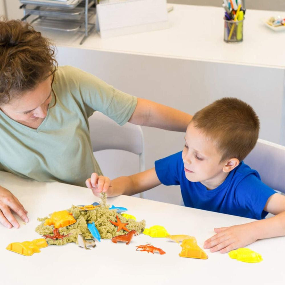 Ten wyjątkowy zestaw kinetycznego piasku to doskonały wybór dla dzieci, aby stworzyć własny podwodny świat w warunkach domowych.