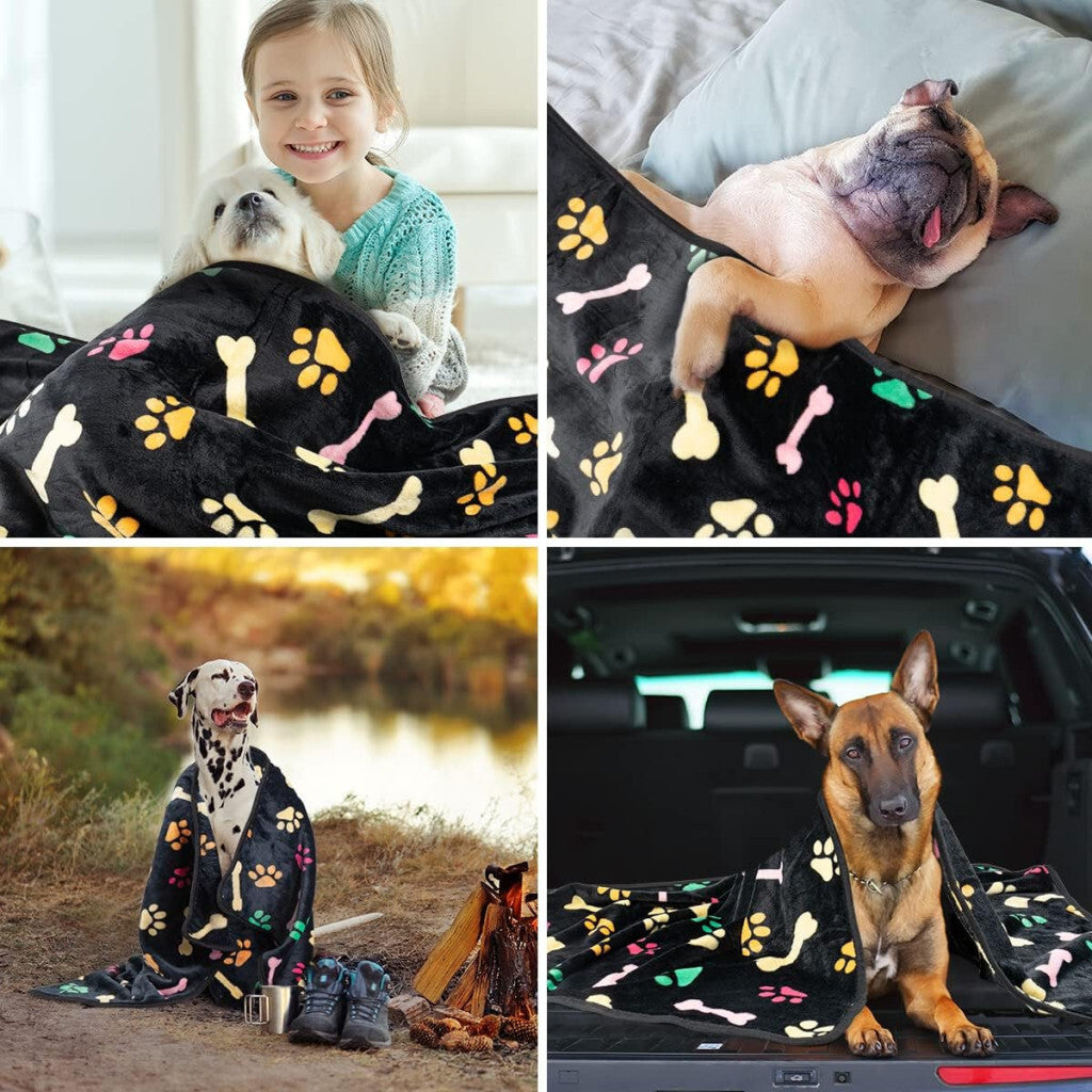 Miękki materiał: Dwustronny, w 100% poliester, z uroczym wzorem kości. Miękki, wygodny i trwały. Dobrze wykonany ciepły polarowy koc, nie mechaci się, nie blaknie. Zapewnia ciepło i komfort Twojemu pupilowi zarówno zimą, jak i latem.