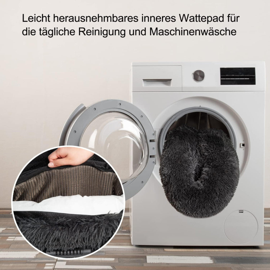 - Wygodne materiały: Premium, luksusowy efekt sztucznego futra i pianka z pamięcią kształtu zapewniają ciepłe, bezpieczne i komfortowe miejsce do spania. Pianka z pamięcią kształtu pomaga psu szybciej się uspokoić i łagodzi lęk.