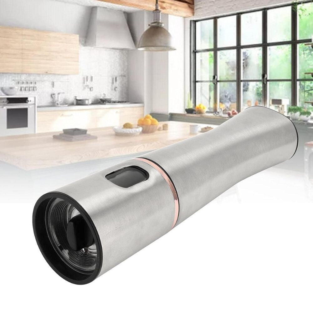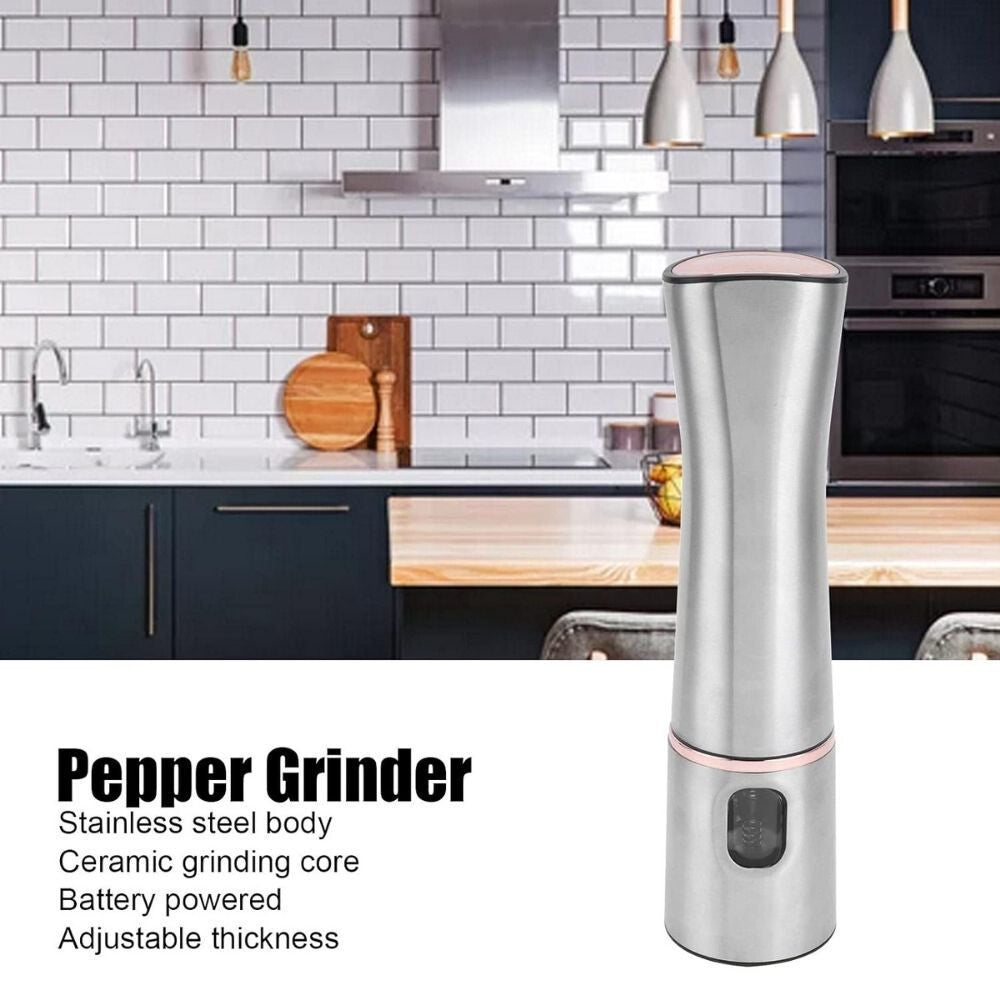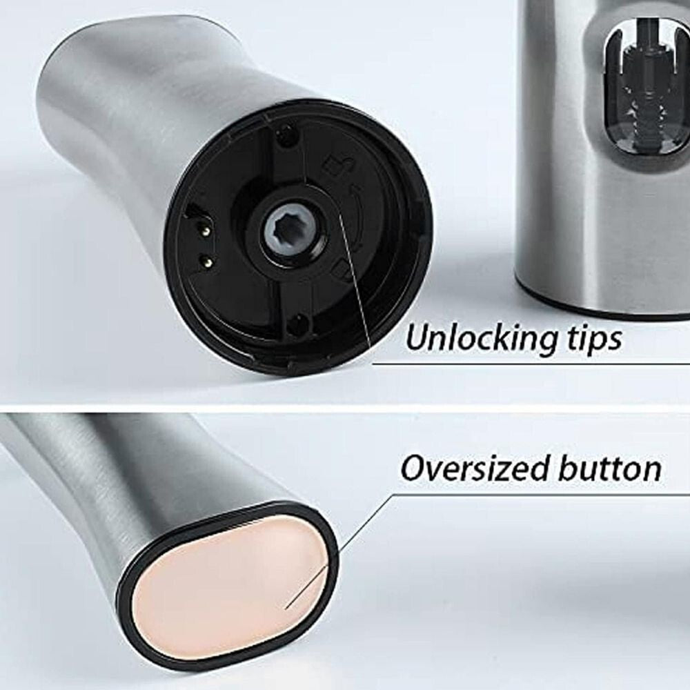 - Ten elegancki i stylowy elektryczny młynek do pieprzu i soli to doskonałe uzupełnienie Twojej kuchni, wykonany z wysokiej jakości stali nierdzewnej i akrylu. Obsługa jedną ręką ułatwia przygotowywanie posiłków, pozwalając na świeże mielenie przypraw za naciśnięciem przycisku. Przezroczysty pojemnik umożliwia regulację grubości mielenia, dzięki czemu zawsze możesz zmielić sól lub pieprz na odpowiednią dla siebie drobność.