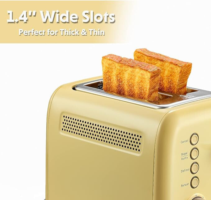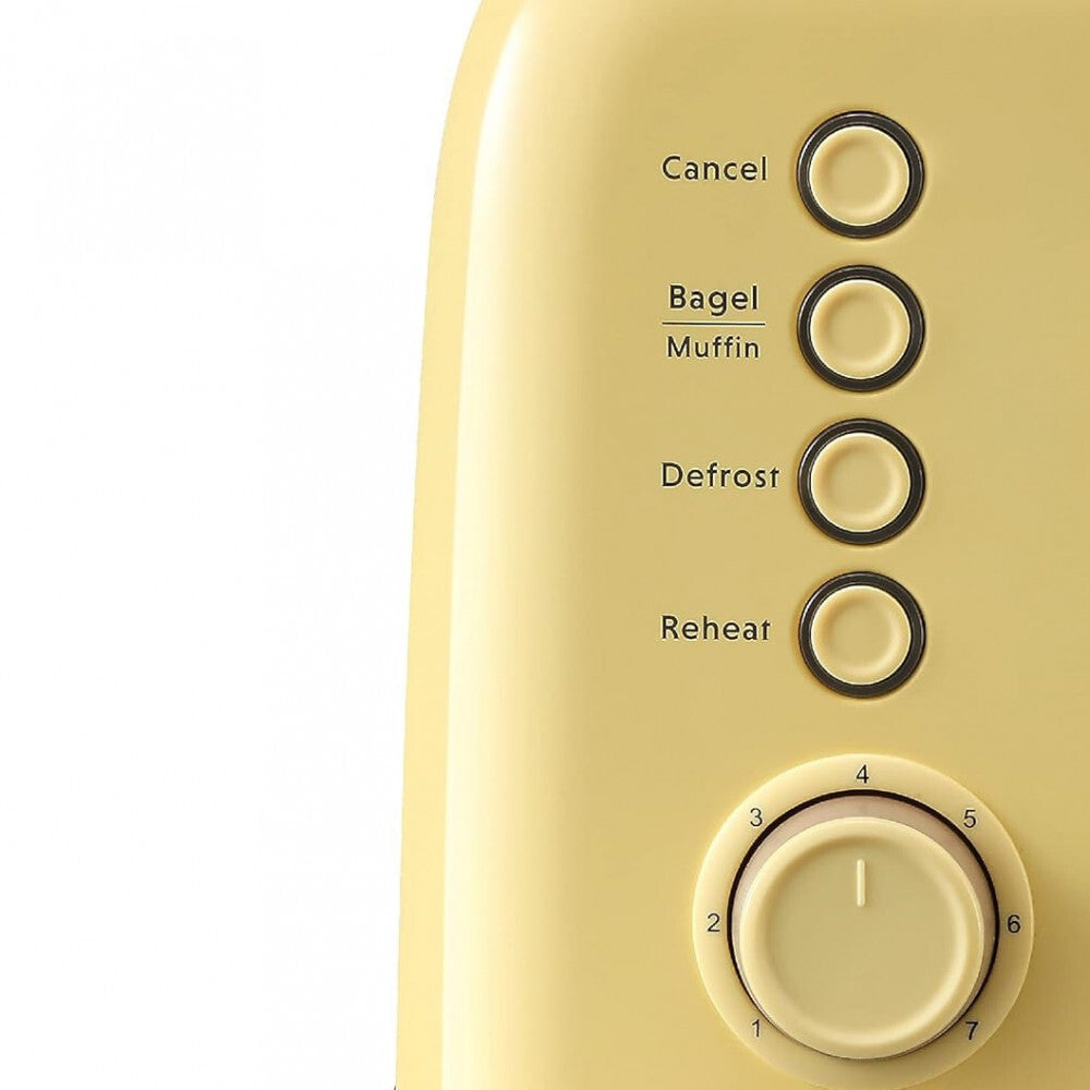 - Toster Buydeem DT620E w Kolorze Cytrynowym na 2 Tosty – Extra Szerokie Otwory, 7 Stopni Przyrumieniania, Funkcja Bagel