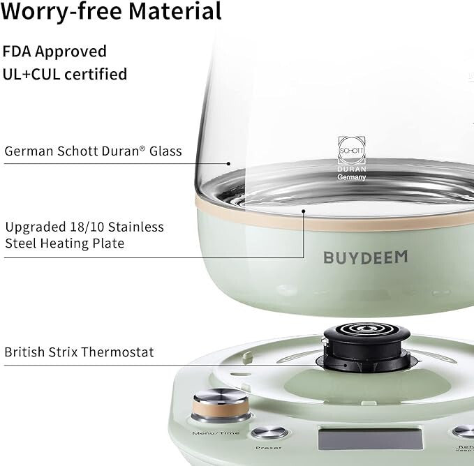 Buydeem K1594T i A206 Zestaw Elektryczny Czajnik i Podgrzewacz z Garnkiem (Zielony)