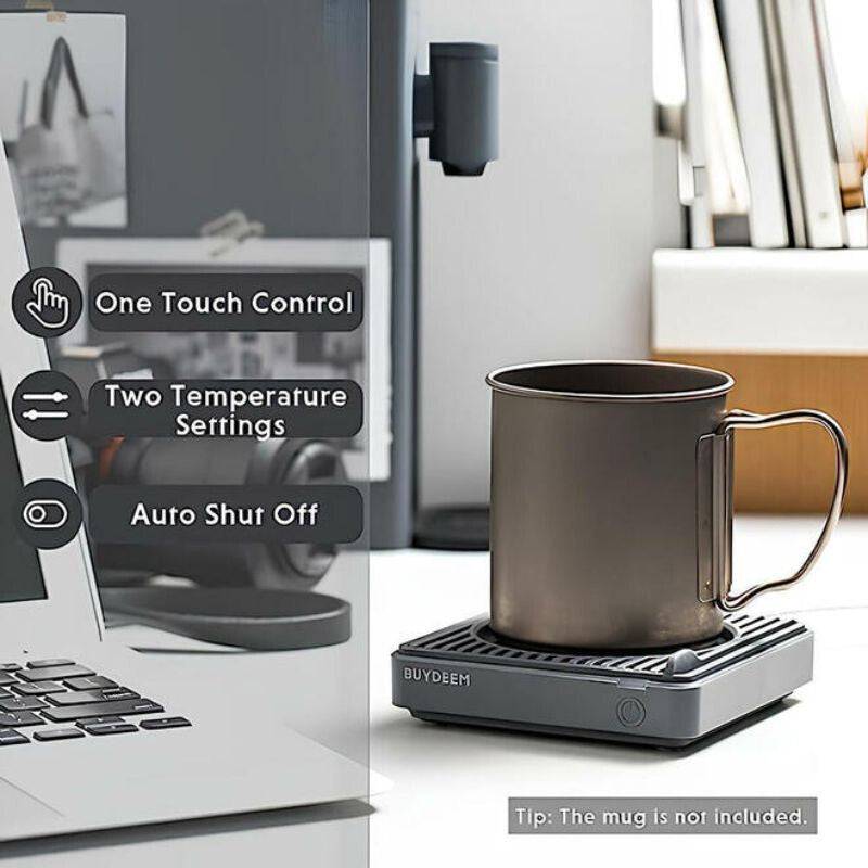 - Buydeem Szary Elektryczny Podgrzewacz do Kubków – 2 Poziomy Temperatury, Silikonowa Podstawa, Automatyczne Wyłączanie
