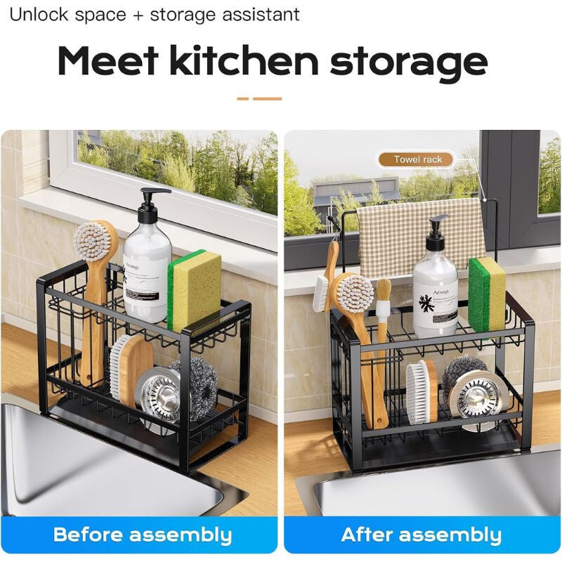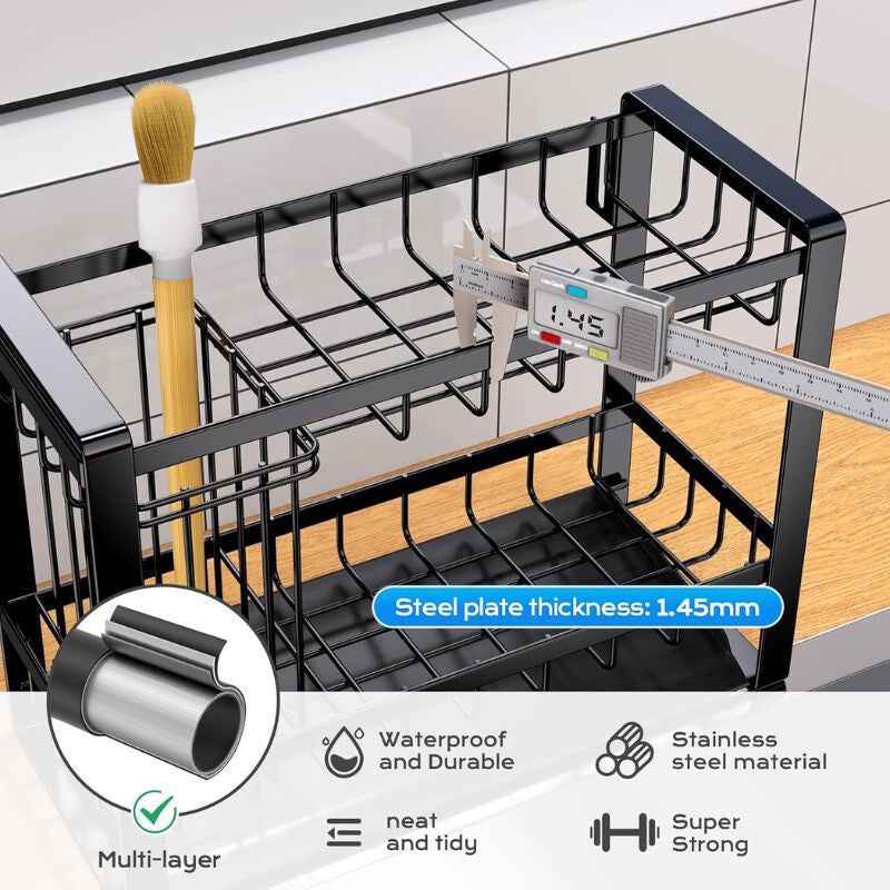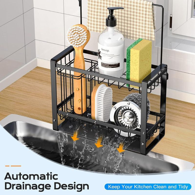 PKBD 2-Poziomowy Uchwyt na Gąbki ze Stali Nierdzewnej - Czarny