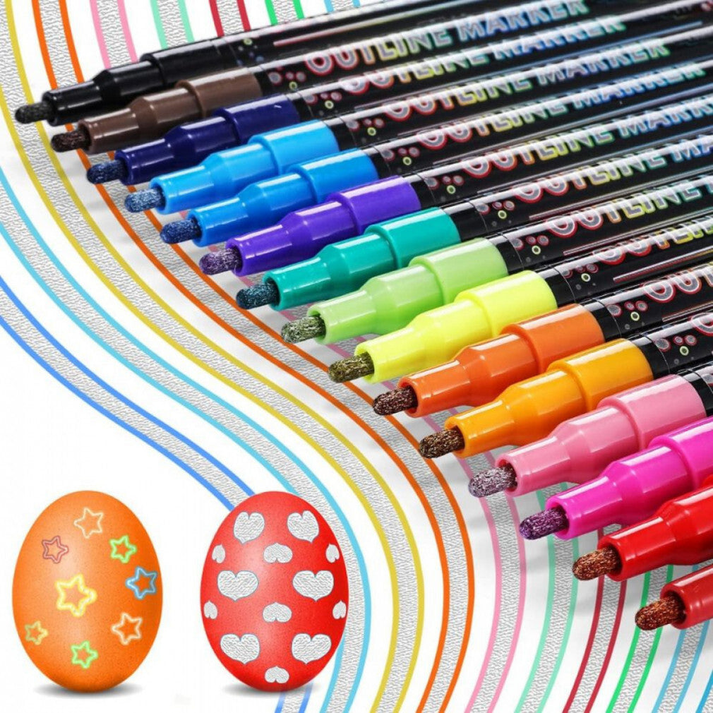 - Buluri Zestaw 15 Markerów Konturowych - Markery Dekoracyjne do Papieru, Szkła i Drewna