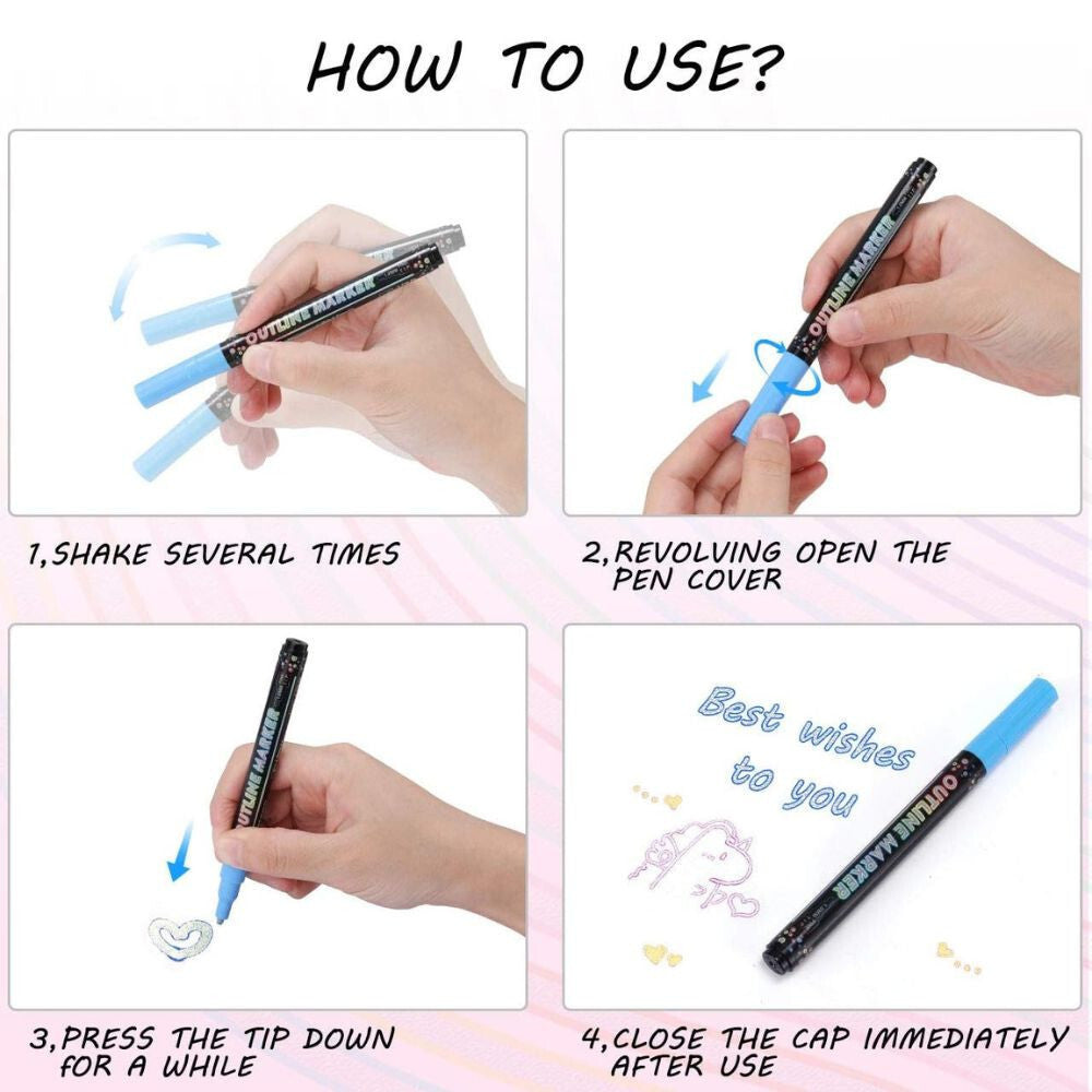 - Ten zestaw 15 różnych kolorów brokatowych pisaków konturowych automatycznie tworzy piękny, dwukolorowy efekt, dzięki czemu każda praca jest efektowna i wyjątkowa.