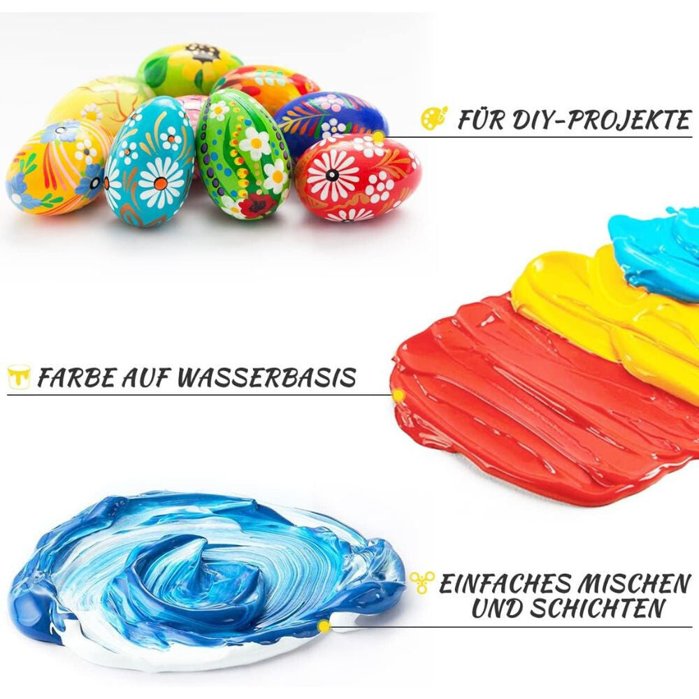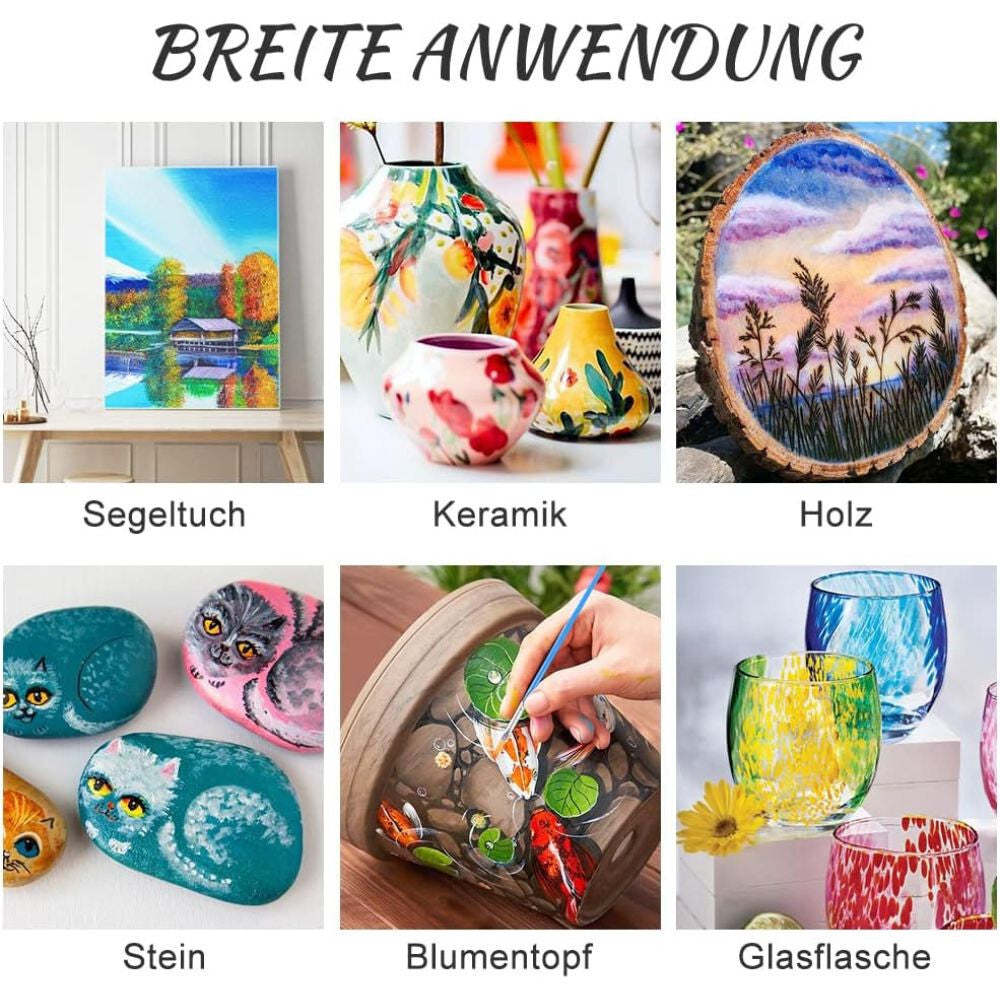 Szybkie schnięcie farb akrylowych pomaga uniknąć rozmazywania, a gotowe prace pozostają wodoodporne i trwałe. - Ostrzeżenie: Nie zalecane dla dzieci poniżej 3 lat.