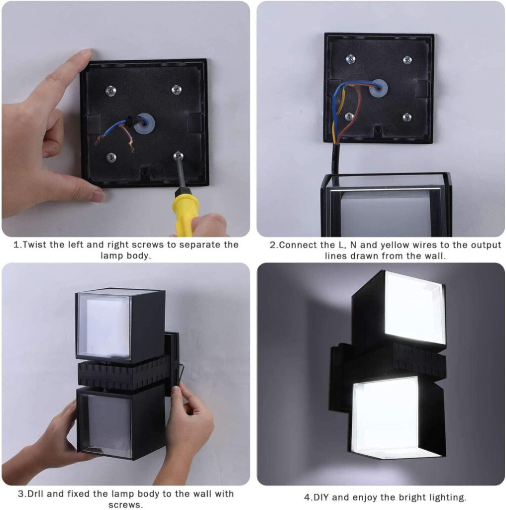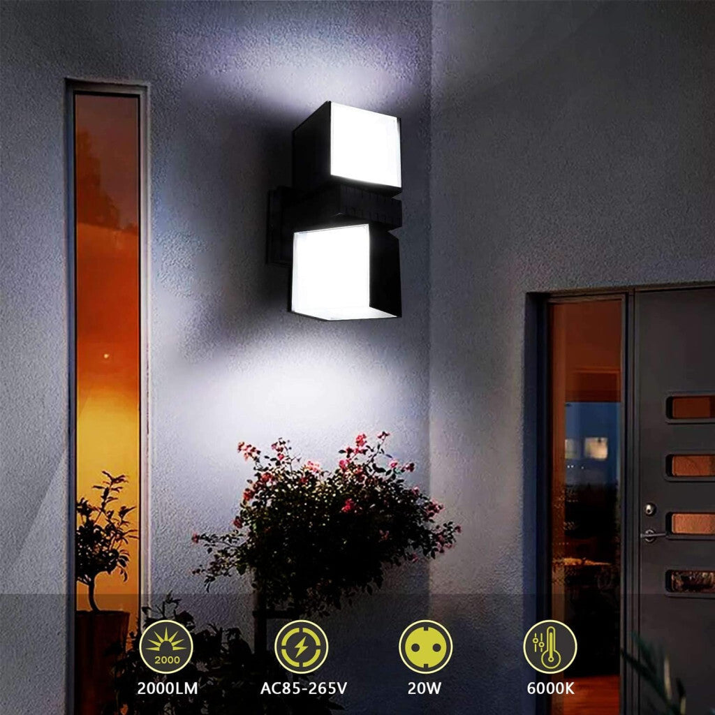 Glighone Nowoczesna Zewnętrzna Lampa Ścienna – Obracana o 360°, Wodoodporna IP65, Energooszczędna Lampa LED