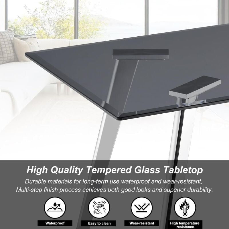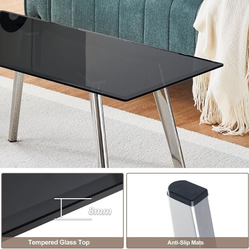 - Nowoczesny design: Czarny szklany blat i nogi ze stali nierdzewnej dodają elegancji i stylu każdemu wnętrzu.