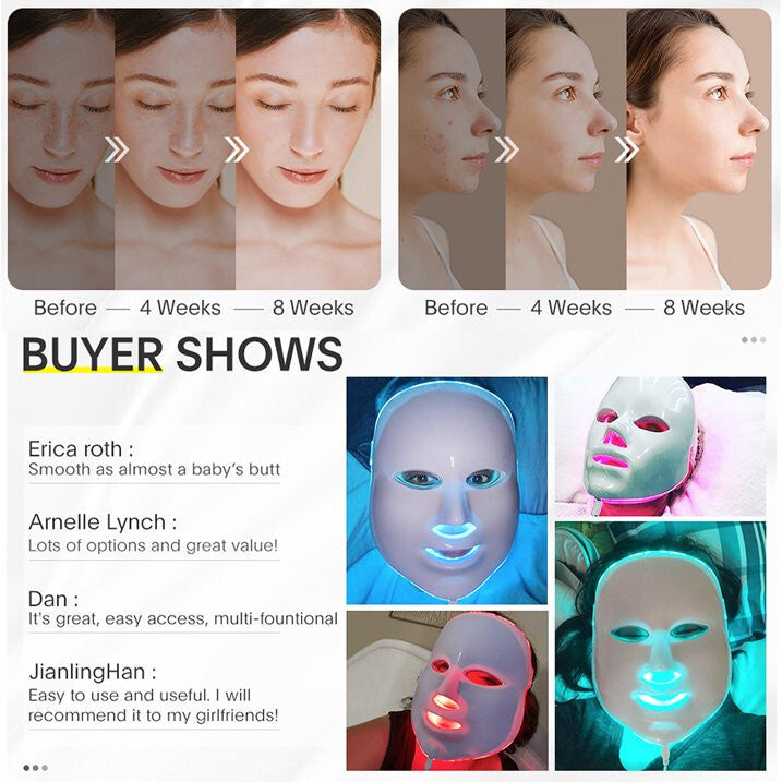 7-kolorowa Maska LED na Twarz i Szyję, Urządzenie do Fototerapii Leczenia Trądziku i Odmładzania Skóry