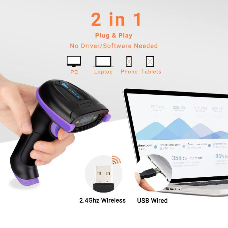 Tera 5100PL Laserowy 1D Bezprzewodowy i Przewodowy Czytnik Kodów Kreskowych – Szybki i Niezawodny Odczyt Danych do Magazynów, Sklepów i Biur