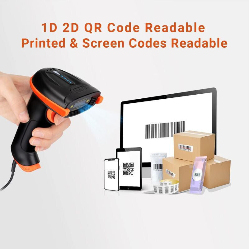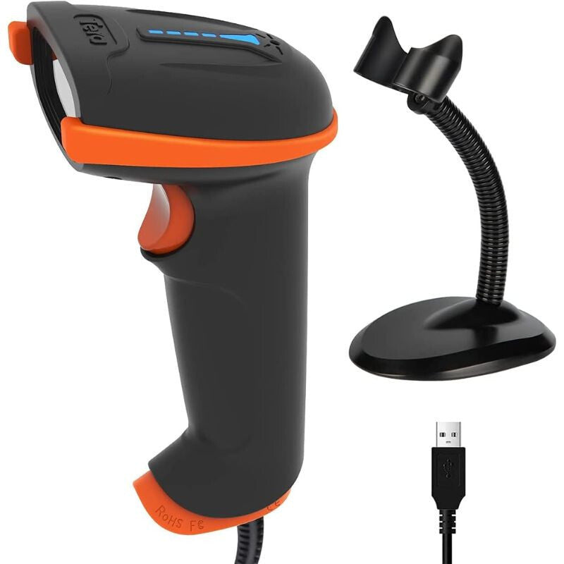 - Tera D5100Y-Z Przewodowy Czytnik Kodów 1D2D z Statywem – IP65 Odporność na Pył i Wodę, Plug & Play - Pomarańczowy