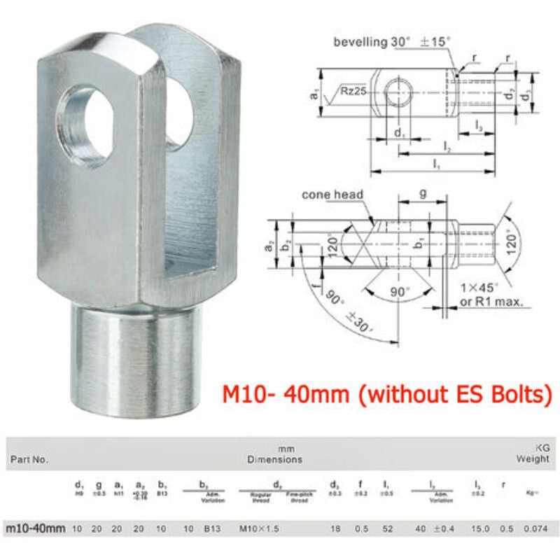- 1 para końcówek amortyzatora gazowego, Caberre M10-40mm