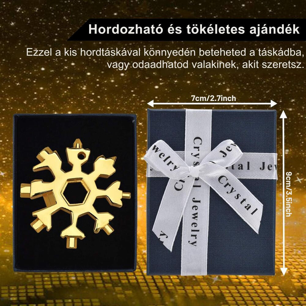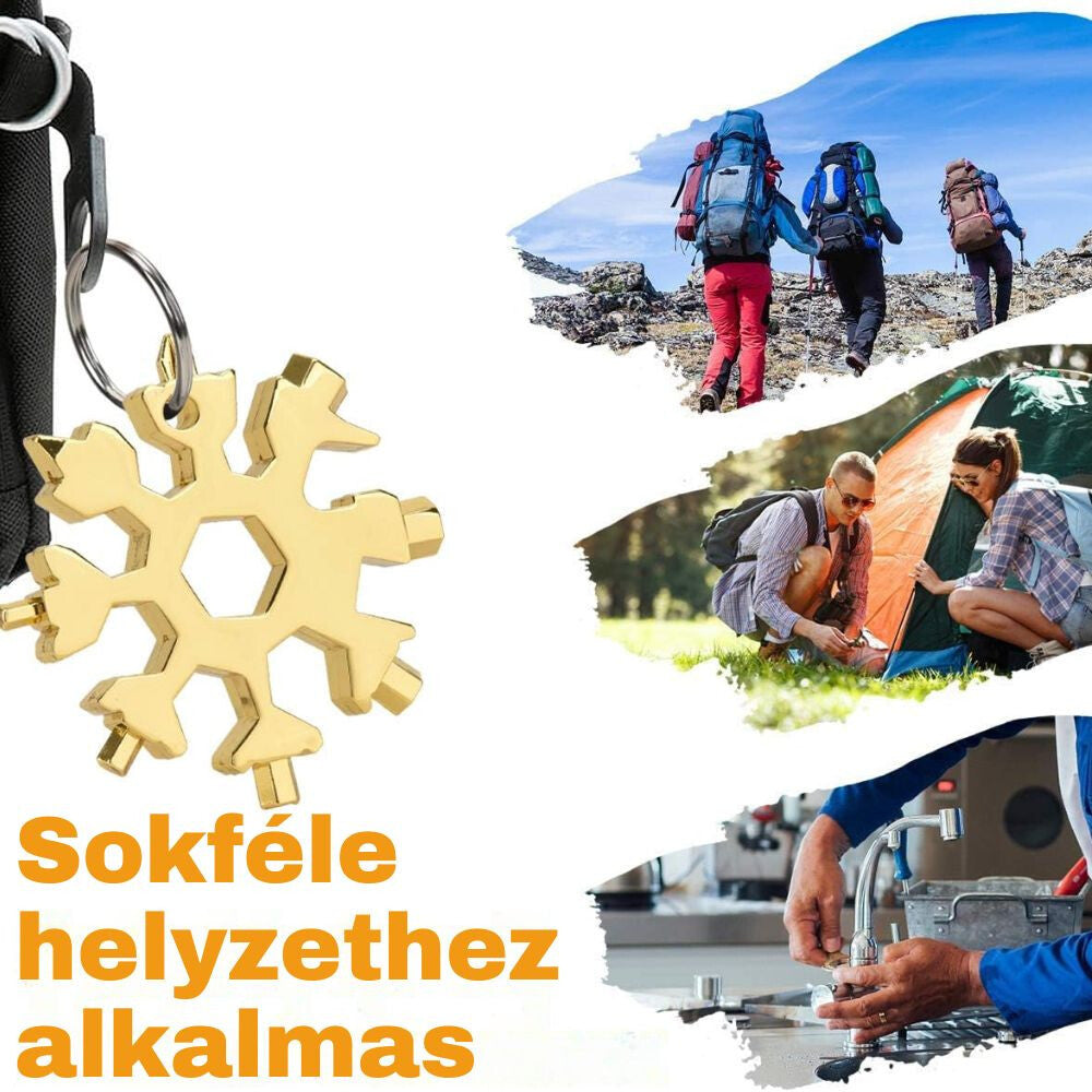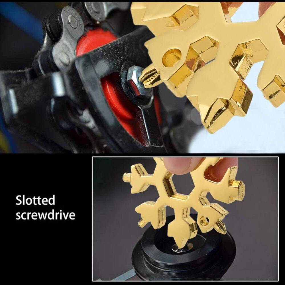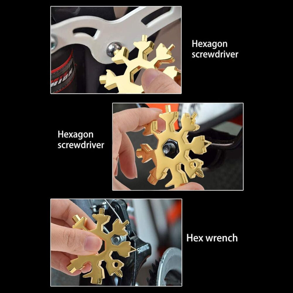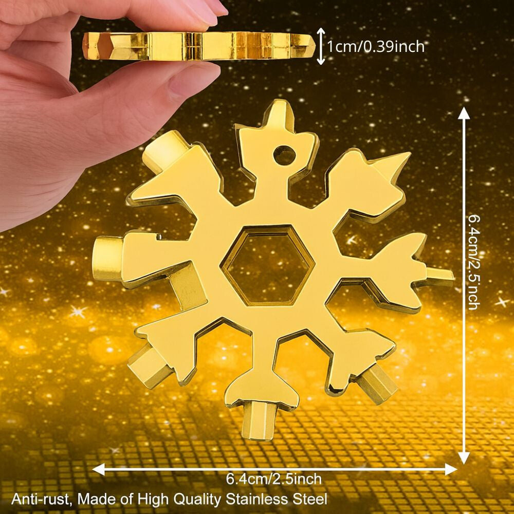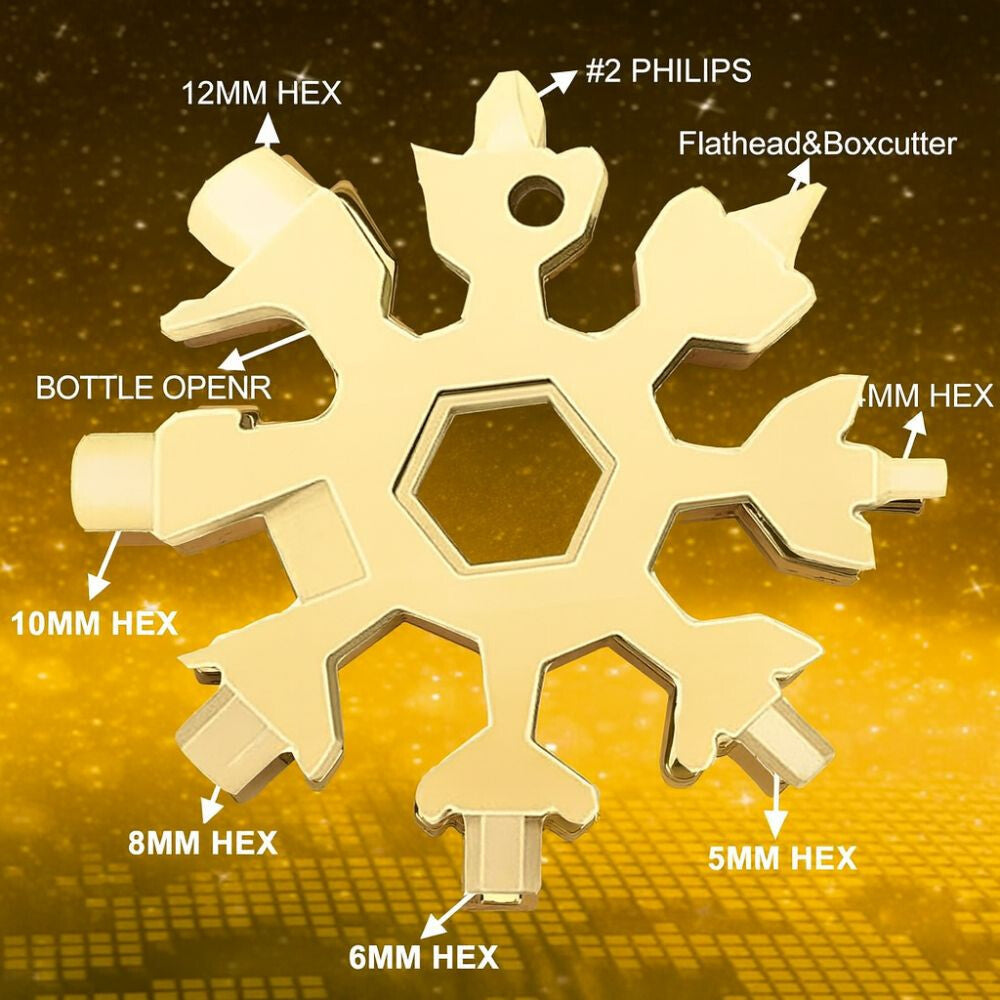 - Ten praktyczny i kompaktowy multitool 18 w 1 w kształcie płatka śniegu to doskonały towarzysz na co dzień i podczas przygód na świeżym powietrzu. Dzięki wszechstronnej konstrukcji może służyć jako brelok, śrubokręt, klucz imbusowy, otwieracz do butelek lub narzędzie do szybkich napraw – zawsze pod ręką, gdy jest potrzebny.