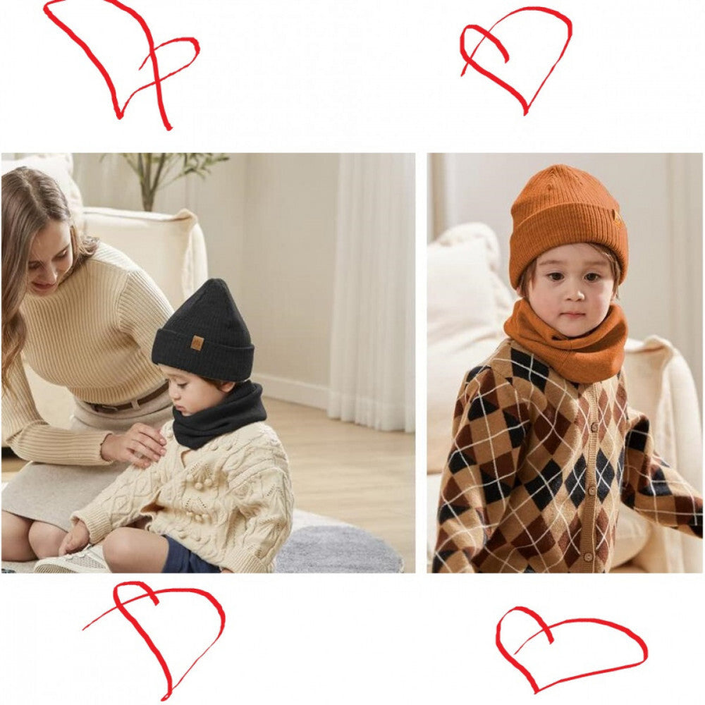 - AHAHA Zestaw Czapka i Komin dla Małych Dzieci - Rozmiar M, Czarny
