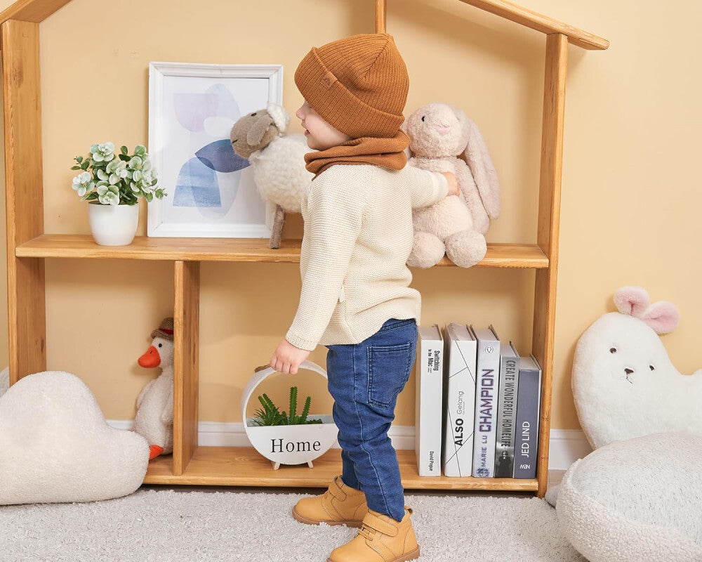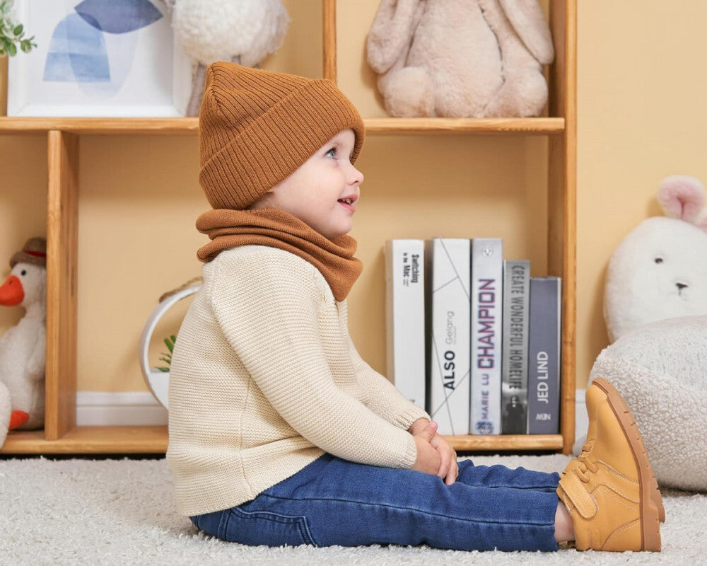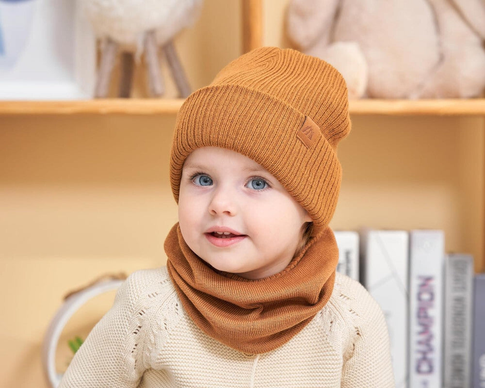 AHAHA Zestaw Czapka i Komin dla Małych Dzieci - Rozmiar M, Brązowy, Ciepły Zimowy Dodatek