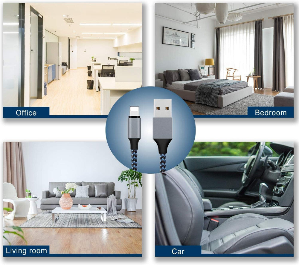 - Zawartość opakowania: 5 sztuk szybkich kabli USB do iPhone’a o długościach 1m + 2m/3 sztuki + 3m. (Adapter do ładowania nie jest dołączony). Zestaw kabli do ładowania jest bardzo praktyczny do wymiany kabli akcesoriów iPhone’a lub do posiadania dodatkowego kabla do iPhone’a w domu, w pracy lub w podróży.