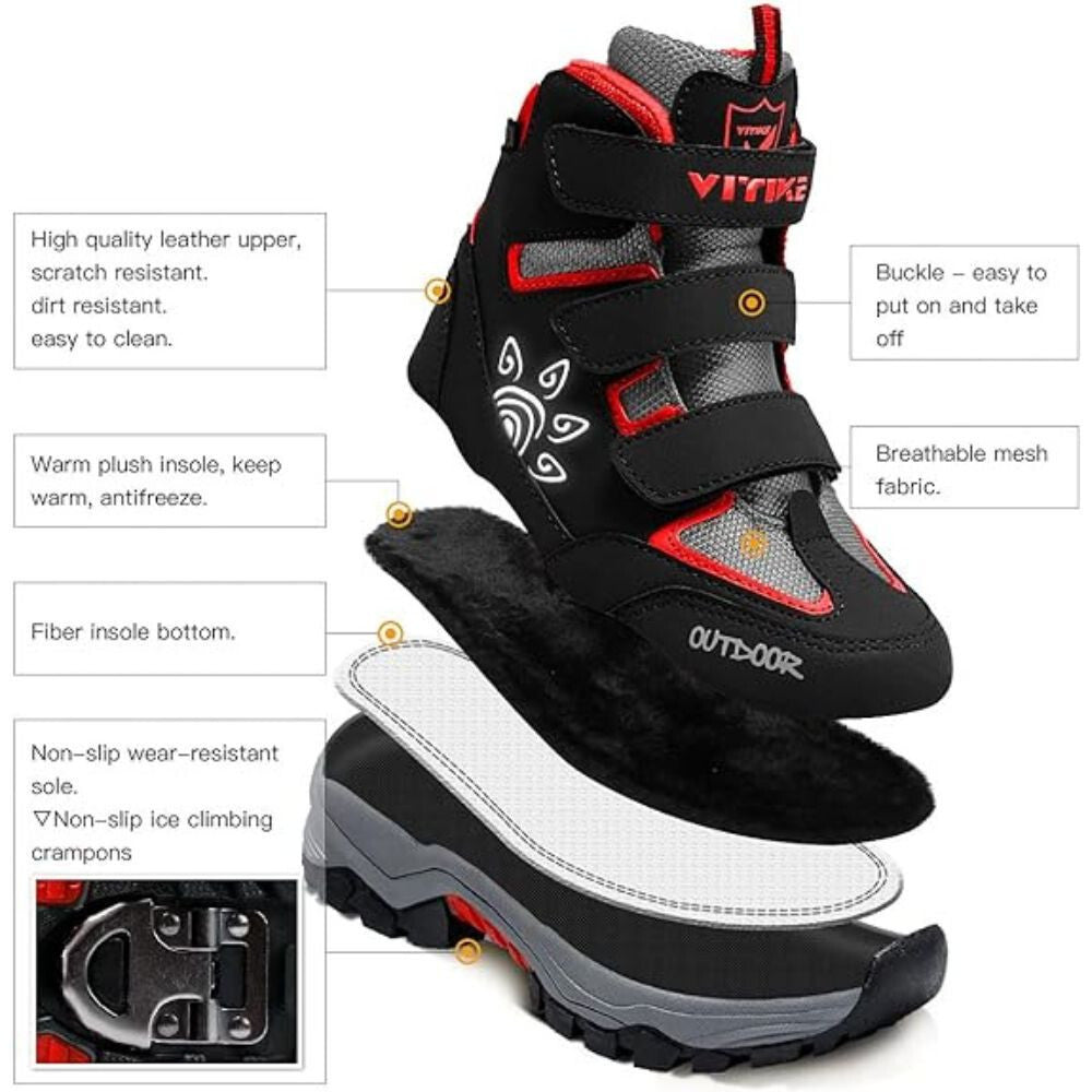 - Miękka i wysokiej jakości cholewka ze skóry ekologicznej oraz materiału siatkowego dla trwałości i wygody. But wodoodporny, wiatroodporny i śniegoodporny.