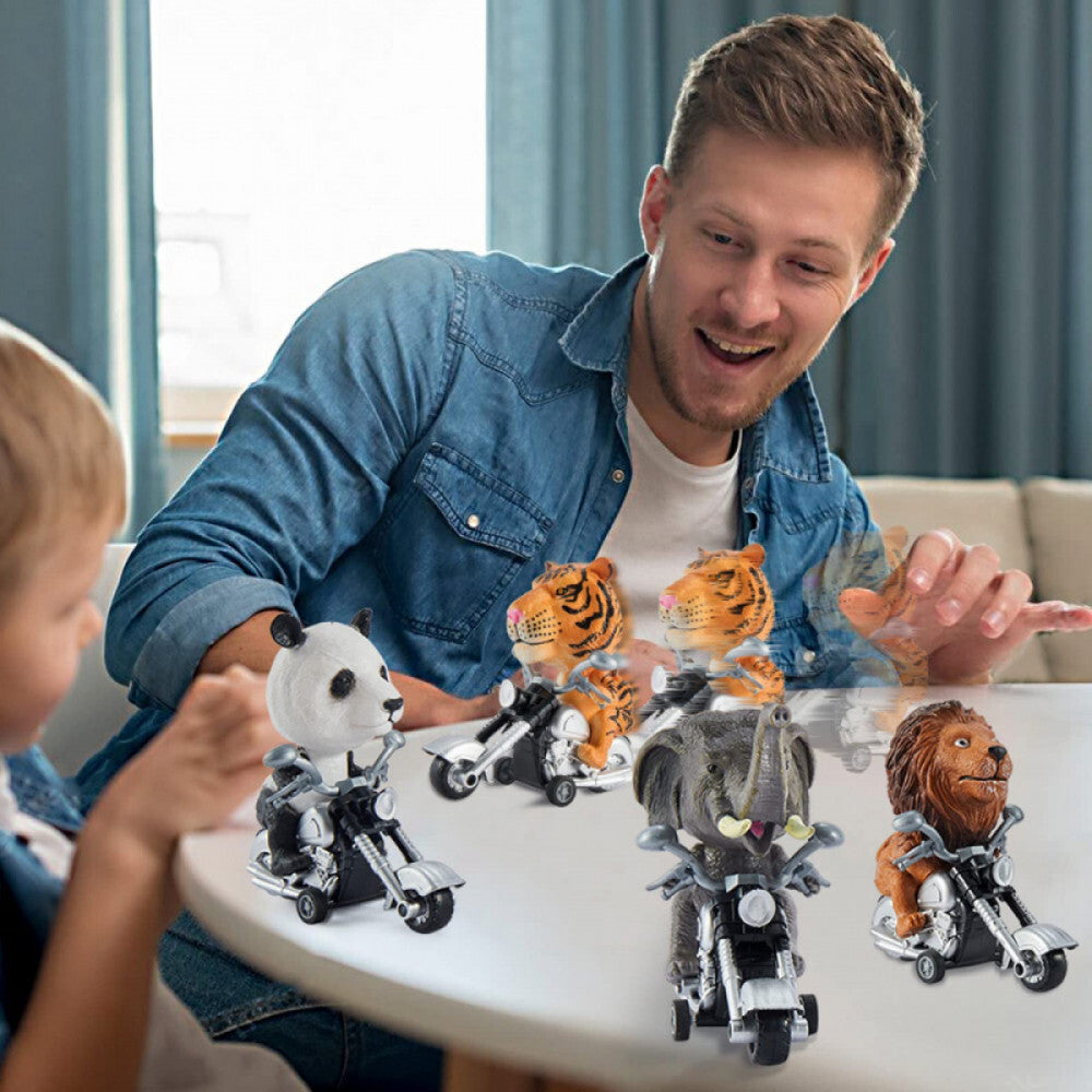 - Zestaw Zabawek Motocyklistów Zwierząt – Wesoła i Pełna Akcji Motocyklowa Przygoda dla Dzieci