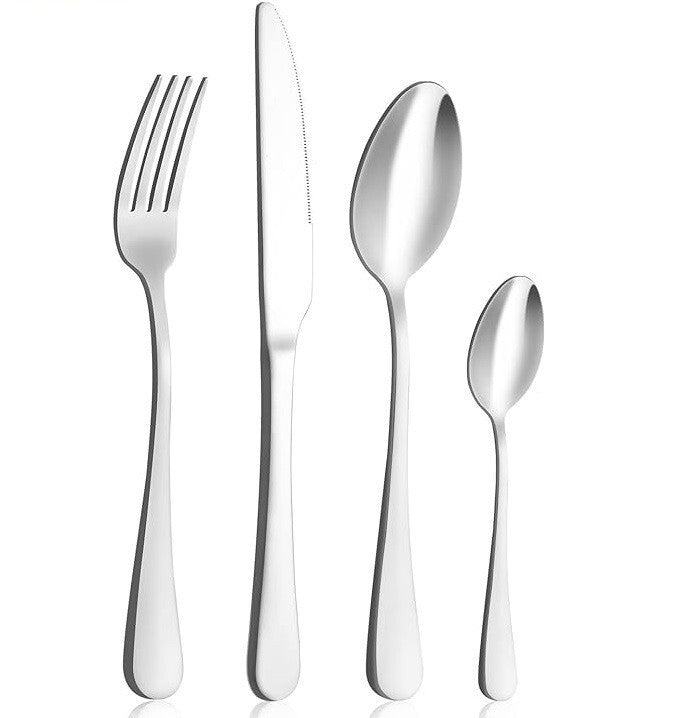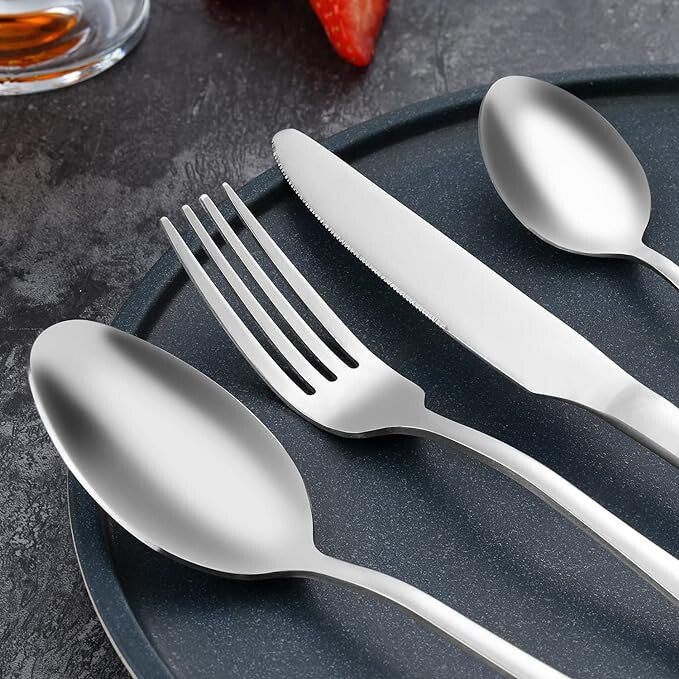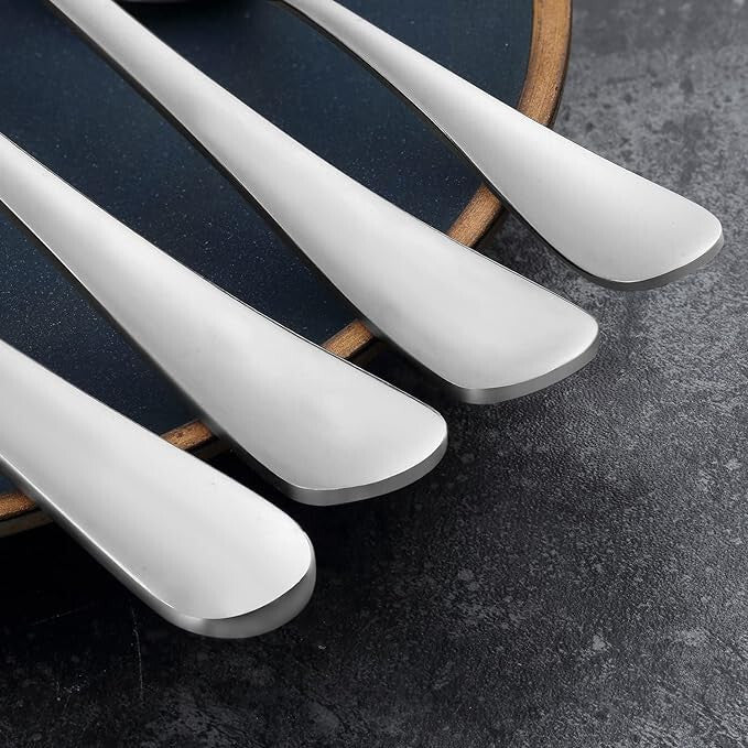- Ten wysokiej jakości design cechuje się prostą rączką i gładką, lustrzaną powierzchnią, dzięki czemu zawsze wygląda olśniewająco, niezależnie od dekoracji stołu. Matowe srebro i elegancki kształt doskonale pasują do każdego domowego lub restauracyjnego posiłku, pomagając utrzymać styl i profesjonalizm. Ergonomiczny kształt zapewnia wygodny chwyt, a odpowiednia grubość i waga sztućców sprawiają, że są idealne zarówno dla dorosłych, jak i dzieci.