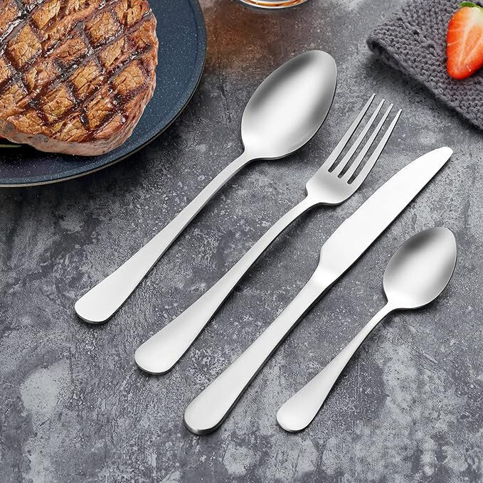 - Zestaw sztućców BEWOS 8 elementów z matowej stali nierdzewnej – doskonała jakość, elegancja i trwałość