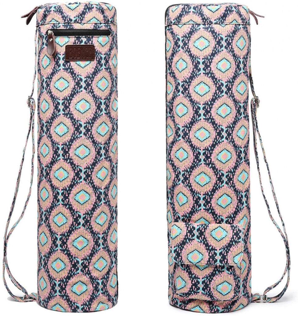 - Odkryj praktyczną i stylową różową torbę na matę do jogi z wzorem, która ułatwia przechowywanie i transport maty na każdą lekcję jogi!