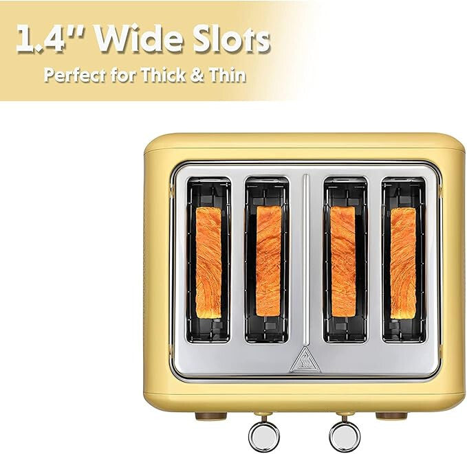 - Toster Buydeem DT640E – na 4 kromki, cytrynowożółty, retro design