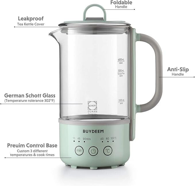 - PRECYZYJNA KONTROLA GOTOWANIA – Niezależnie czy to herbata, kawa, kakao czy miska owsianki, mini czajnik BUYDEEM K313 umożliwia dokładniejsze i bardziej efektywne gotowanie, zachowując wartości odżywcze i oryginalny smak składników.
