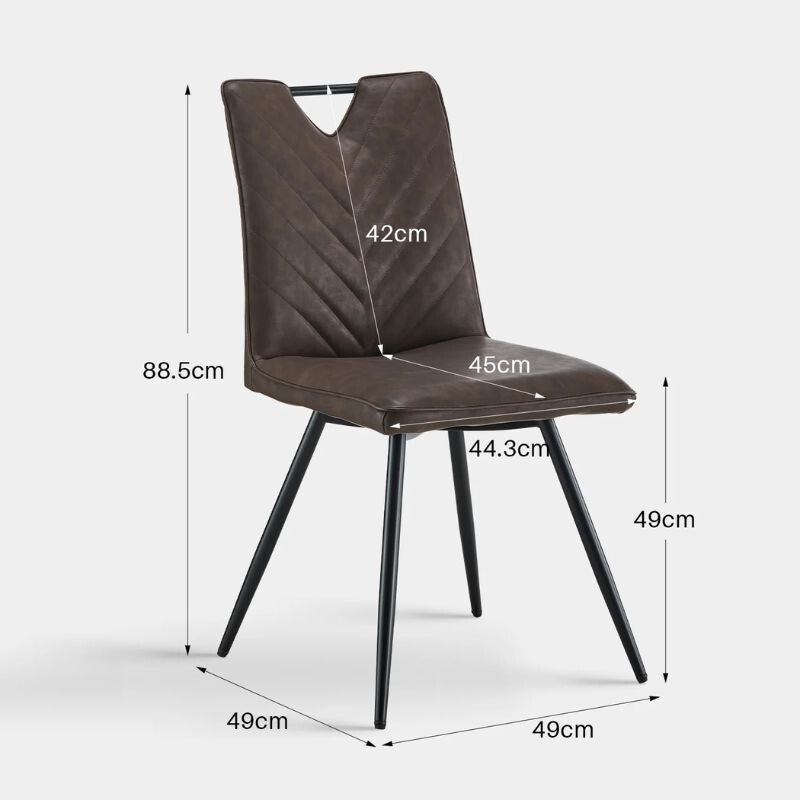- Materiał: Siedzisko i oparcie krzeseł wykonane są z wysokiej jakości skóry ekologicznej, która jest nie tylko estetyczna, ale także łatwa w czyszczeniu i trwała.
