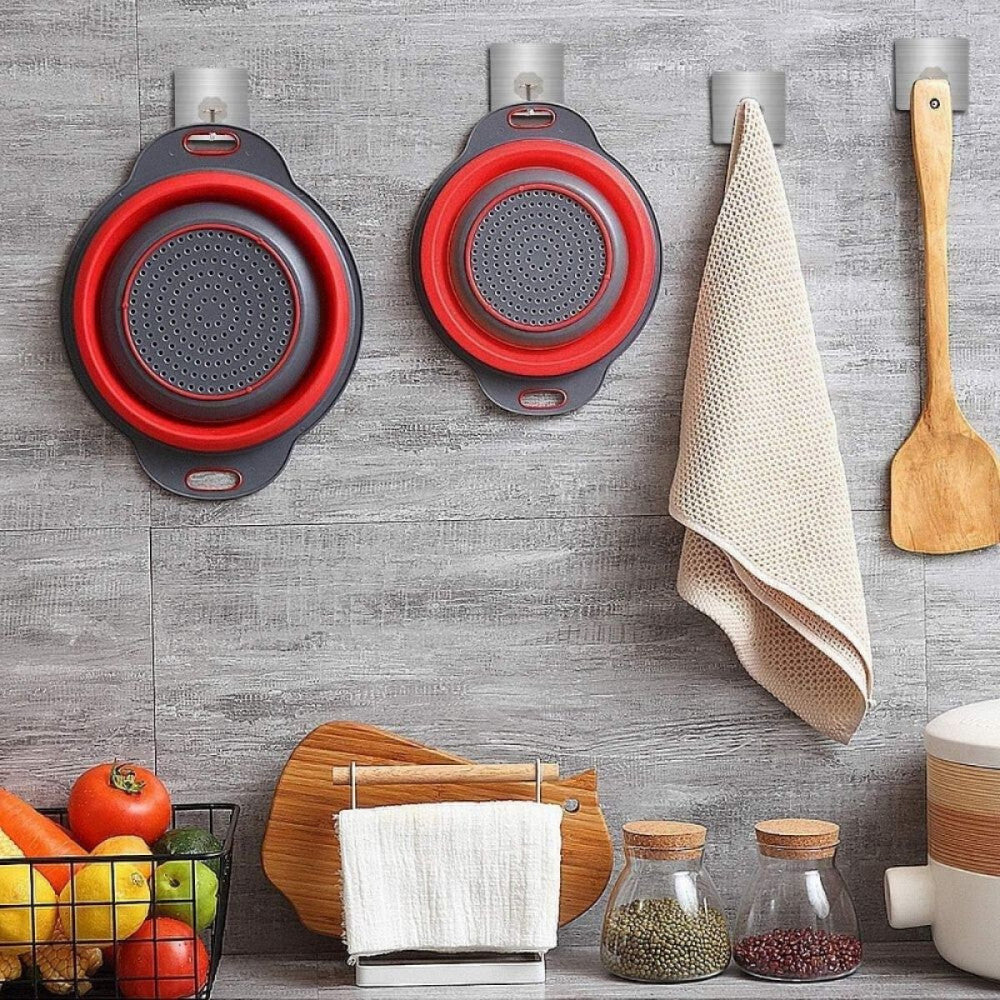 - Łatwe przechowywanie: W zestawie znajdują się 2 mocne, samoprzylepne haczyki ścienne, które ułatwiają wygodne i praktyczne przechowywanie sit.