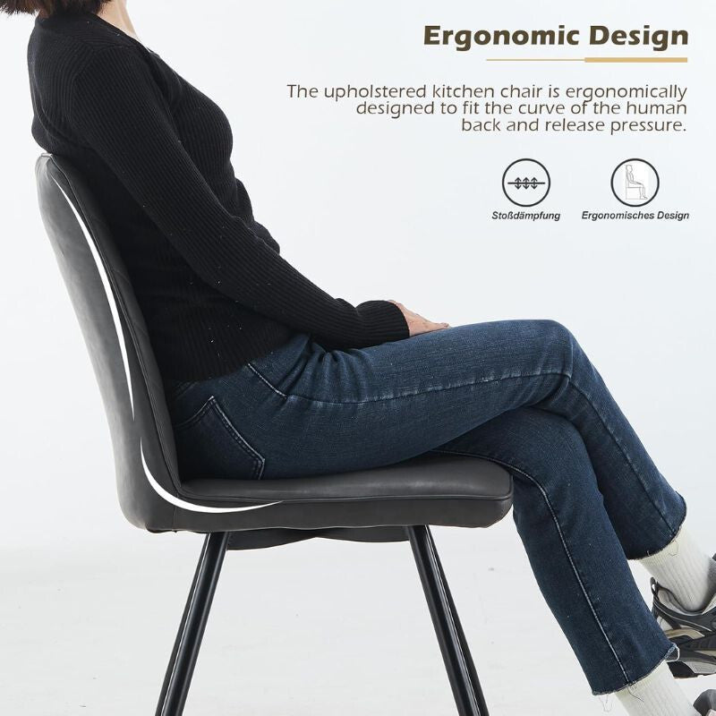 Nowoczesny design: Tapicerka ze skóry ekologicznej oraz prosty, elegancki kształt pasują do każdego stołu jadalnianego, kuchni, salonu, a nawet gabinetu. Krzesła są idealne do wnętrz w stylu nowoczesnym, klasycznym i skandynawskim.
