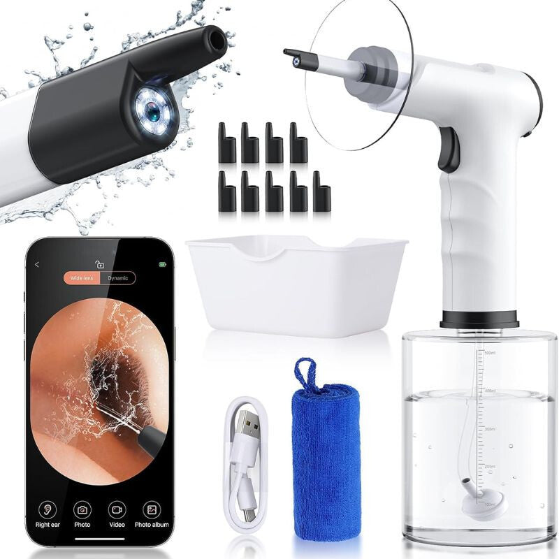 - Elektryczne urządzenie do usuwania woskowiny oferuje nowoczesne i skuteczne rozwiązanie do domowego czyszczenia uszu. Technologia płukania strumieniem wody, regulowane poziomy ciśnienia oraz wbudowane oświetlenie LED i kamera umożliwiają delikatne, a jednocześnie dokładne usuwanie woskowiny bez powodowania dyskomfortu. Idealny wybór dla osób poszukujących bezpiecznego, bezlekowego rozwiązania do regularnej pielęgnacji uszu.