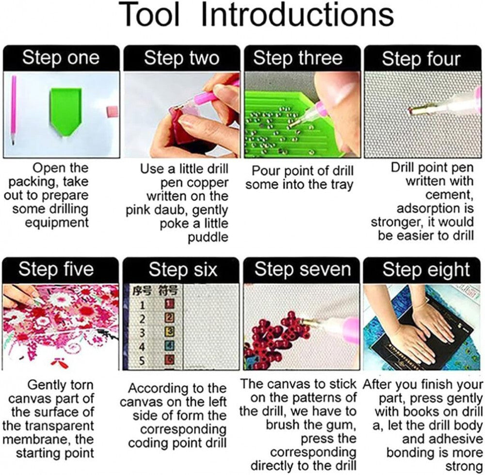 - HD płótno: akcesoria diamentowe zawierają wodoodporną farbę olejną. Litery i symbole nadrukowane na płótnie są łatwe do odczytania. Klej jest mocny, dzięki czemu diamenty nie odpadają. Do zestawu dołączono o 30% więcej diamentów, więc jest ich wystarczająco, aby ukończyć obraz.