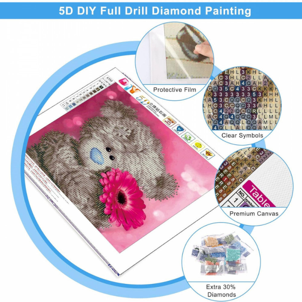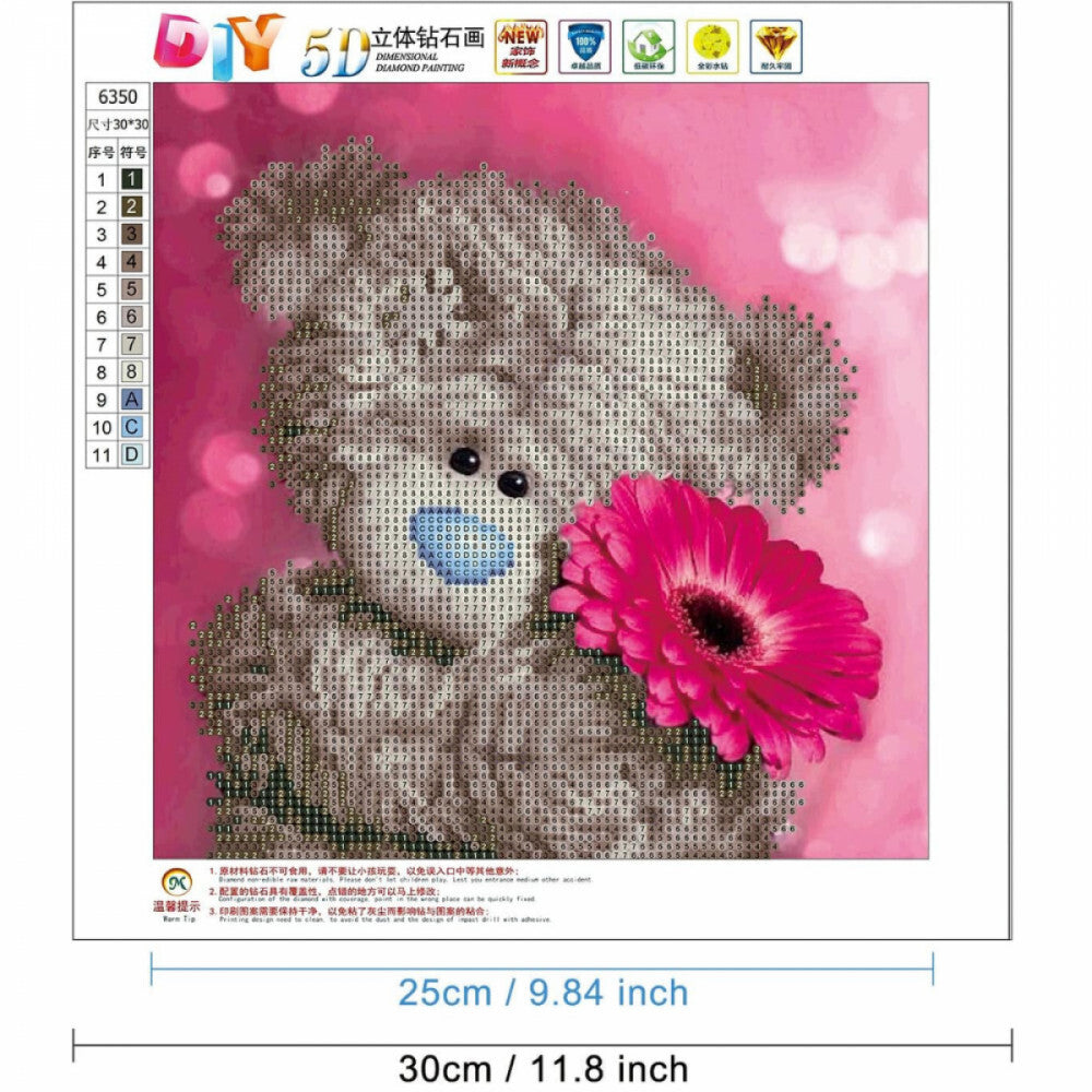 - Zestaw do malowania diamentami z motywem misia i kwiatów 30 x 30 cm