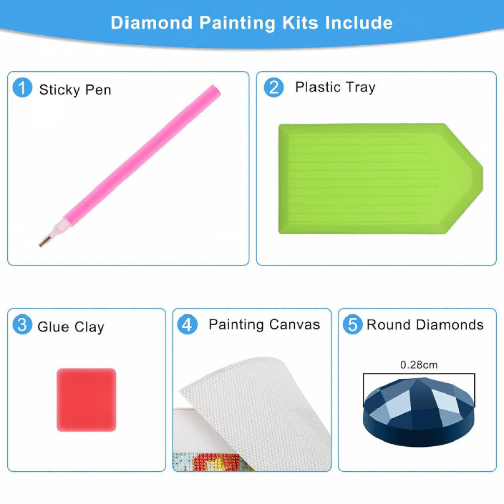 - HD płótno: obraz diamentowy zawiera wodoodporną farbę olejną. Litery i symbole nadrukowane na płótnie są łatwe do odczytania. Klej jest mocny, dzięki czemu diamenty nie odpadają. Do zestawu dołączono o 30% więcej diamentów, więc jest ich wystarczająco, aby ukończyć obraz.
